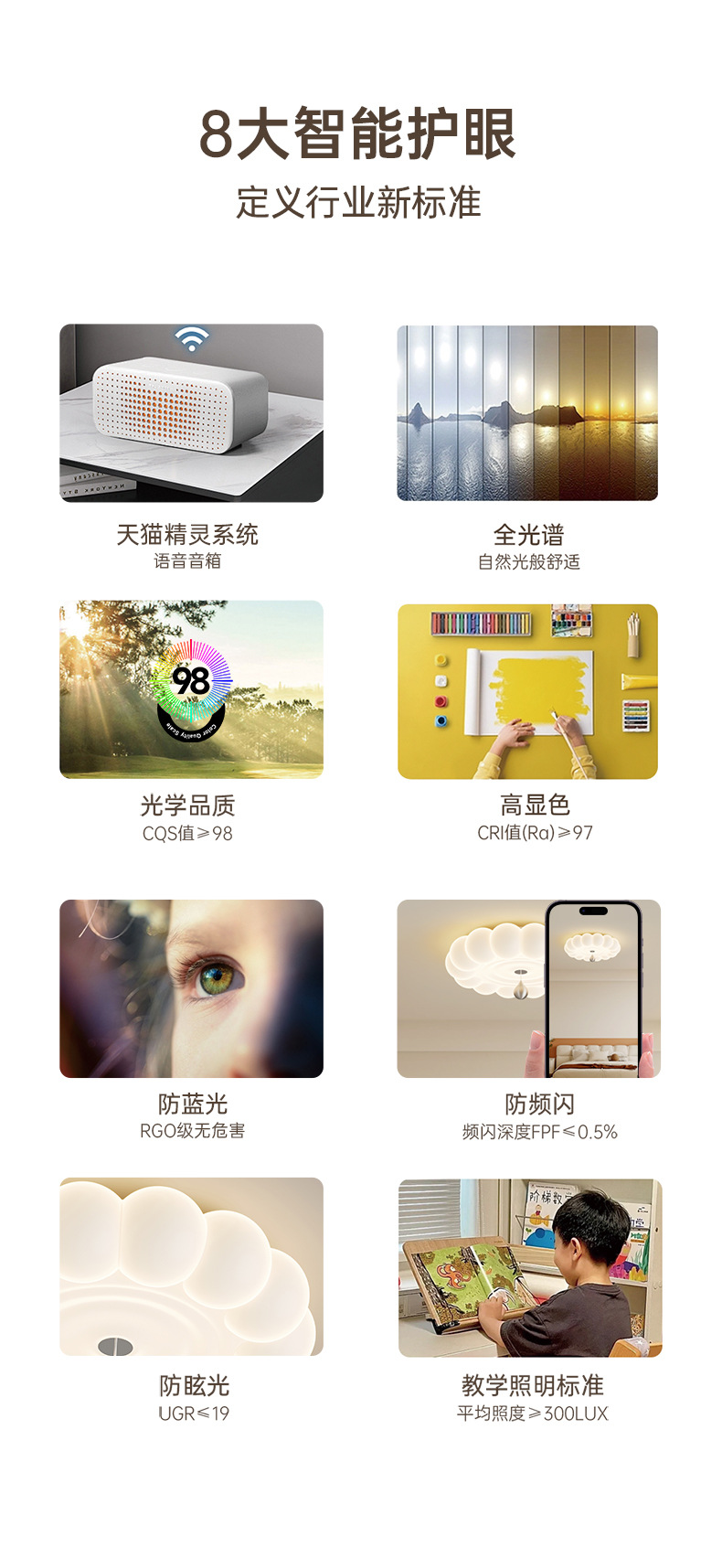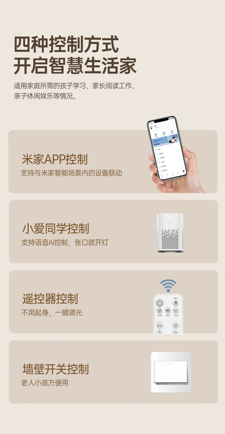 | Colores de luz | Luz variable tricolor de espectro completo,Promise Tmall de espectro completo,El espectro completo admite el control de Xiao Ai |