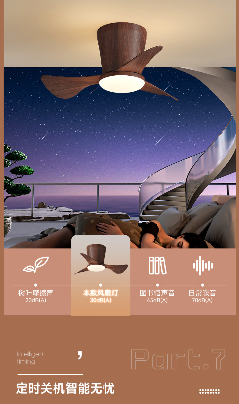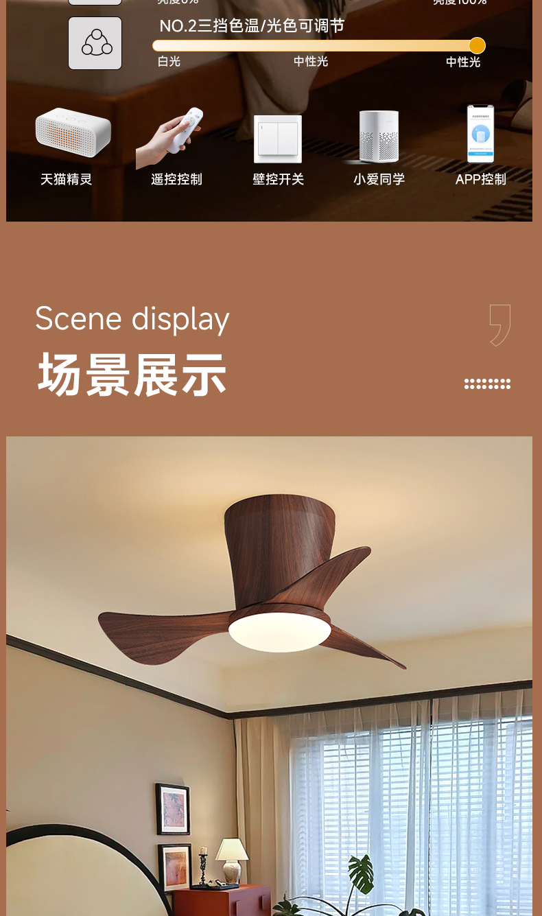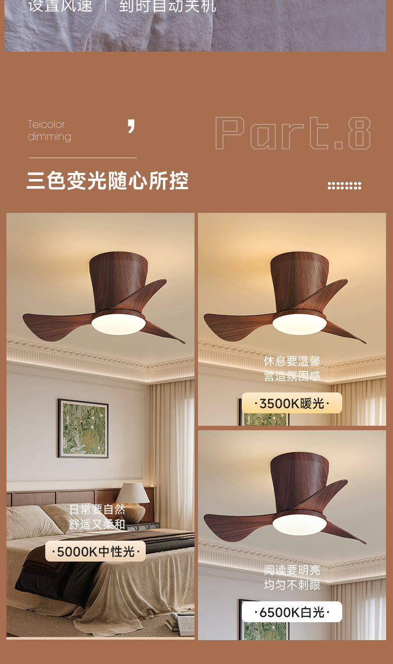 Minimalista, moderno, inteligente y cálido ambiente de ventilador de lámpara para toda la casa, combinación de lámparas y luminarias de la atmósfera de la sala de estar del dormitorio