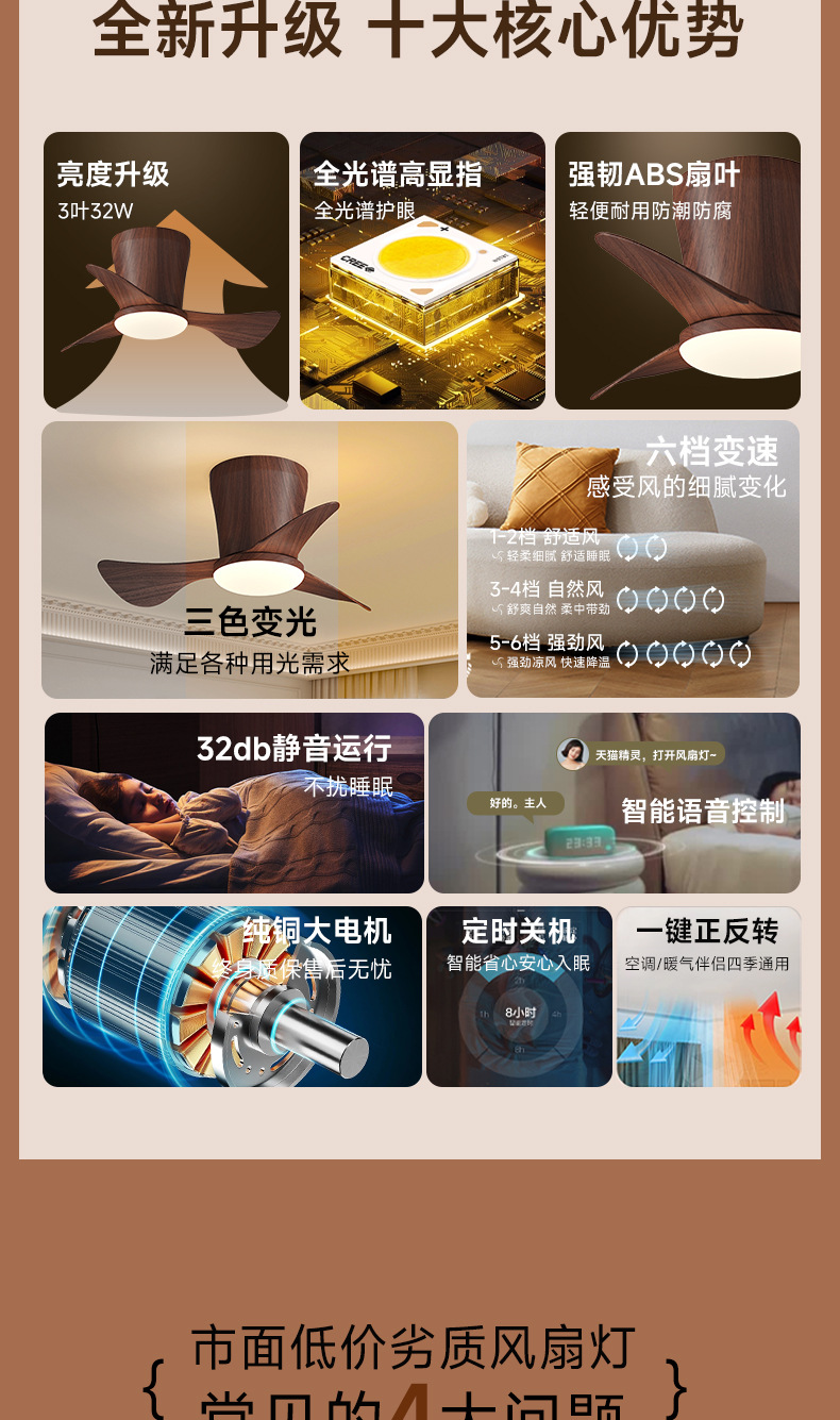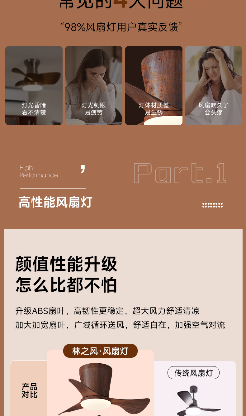 [Seleccionado cuidadosamente] Ventilador de viento antiguo, lámpara de techo de ventilador, nueva lámpara de ventilador de techo 2025, protección ocular retro, ventilador de conversión de frecuencia