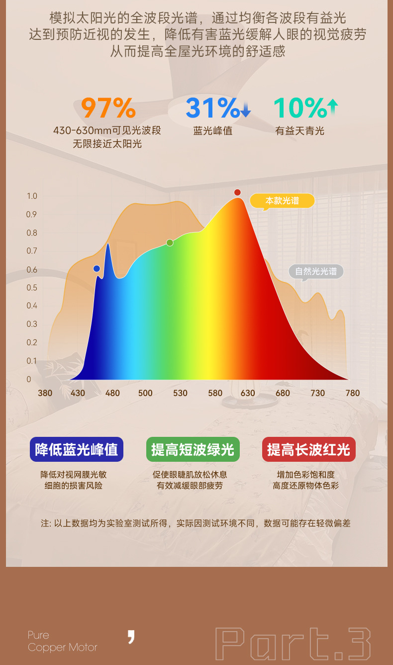 Ventilador de techo de espectro completo Ventilador de techo