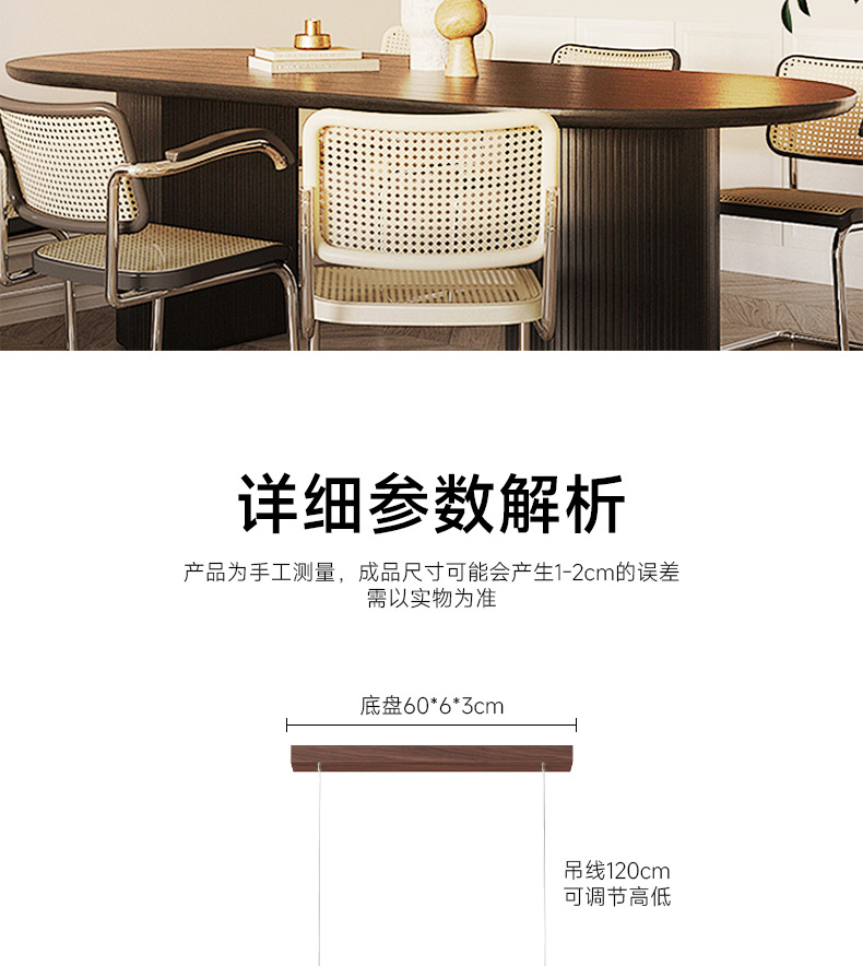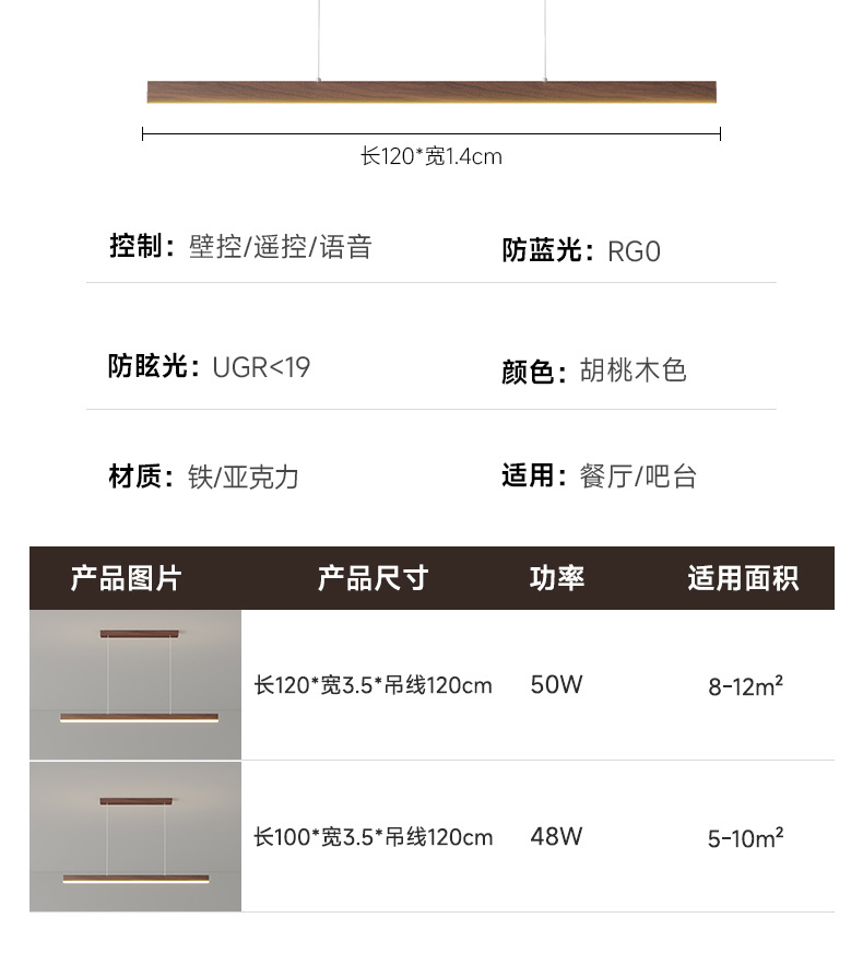 | Colores de luz | Araña de restaurante de color nogal 100*3.5cm,Araña de restaurante de color nogal 120*3.5cm |