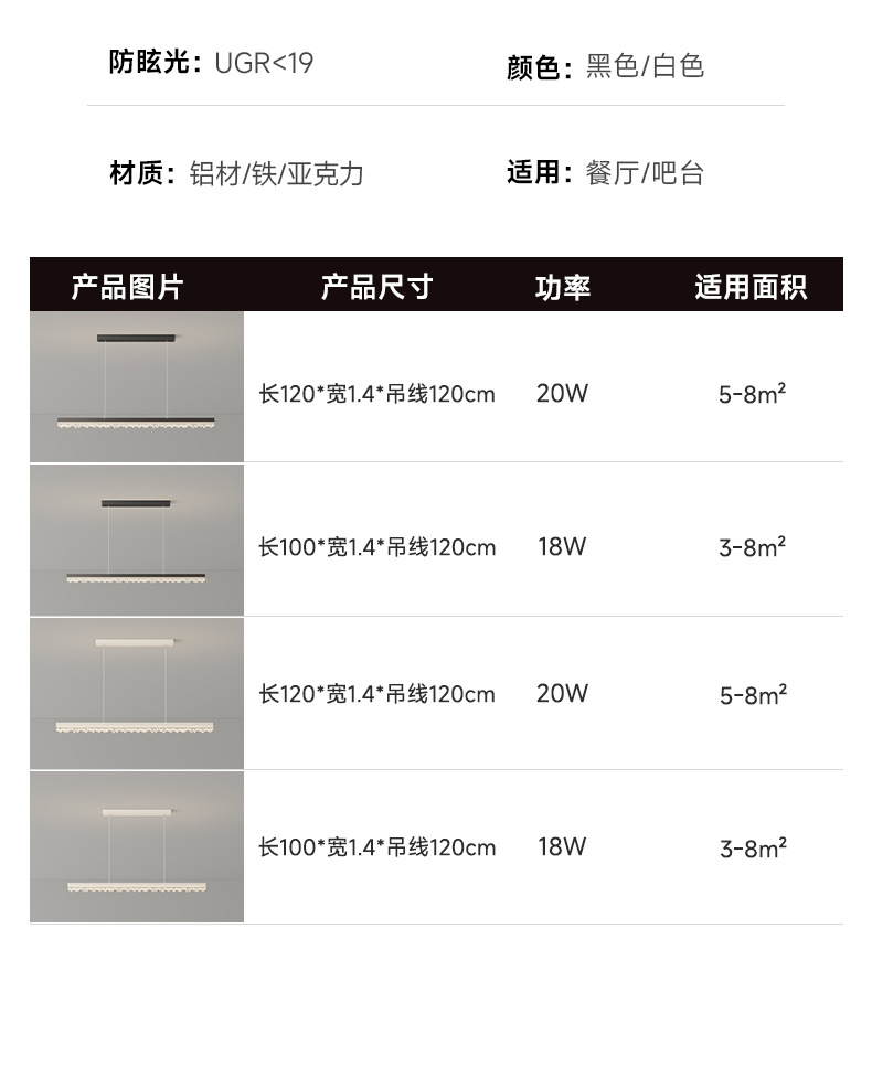 | Colores de luz | Araña de restaurante negro 100*1.4cm,Araña de restaurante negro 120*1.4cm,Candelabro de restaurante blanco 100*1.4cm,Candelabro de restaurante blanco 120*1.4cm |