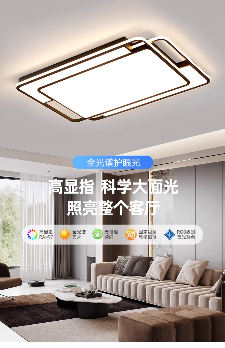 Sala de estar lámpara de techo iluminación principal atmósfera de alto nivel negro sensación simple lámpara de dormitorio de espectro completo Zhongshan iluminación de decoración doméstica