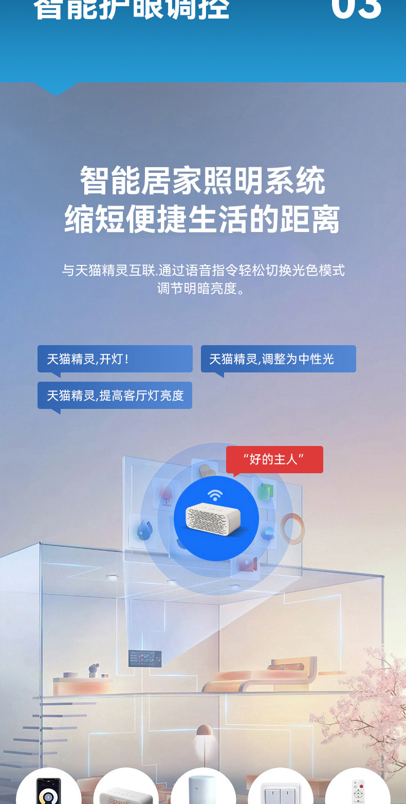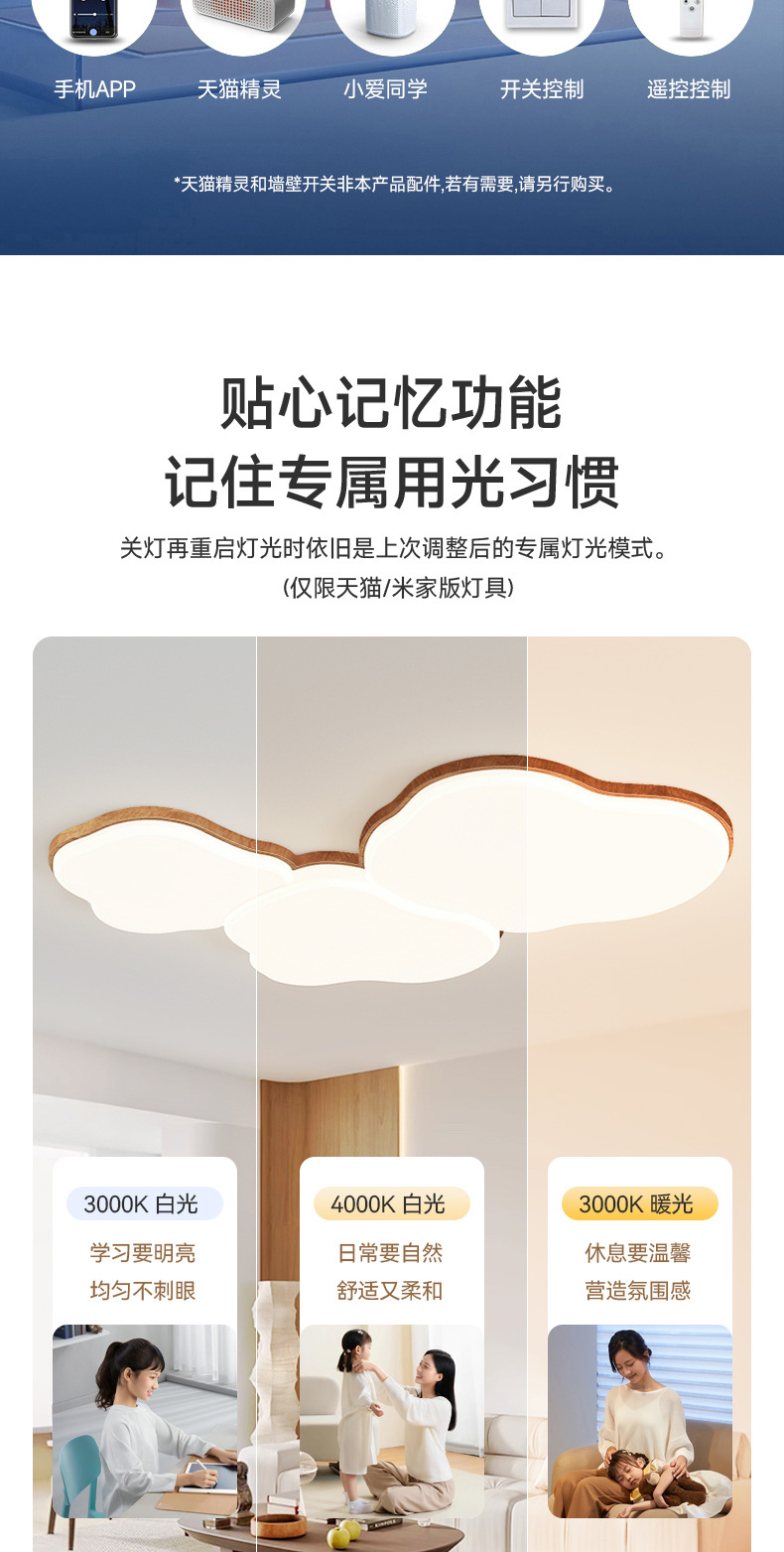 | Color de la luz | Iluminación de tres colores, atenuación sin polos, genio Tmall, soporte para el control de los compañeros de clase de amor pequeño |