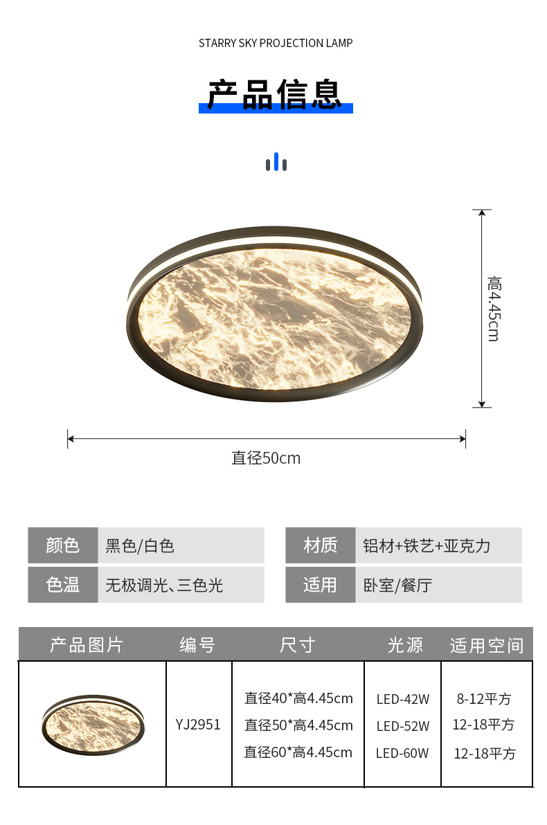 Luz de techo de espectro completo de EE.UU. Luz de sala de estar principal dormitorio Zhongshan fábrica de iluminación de decoración directa