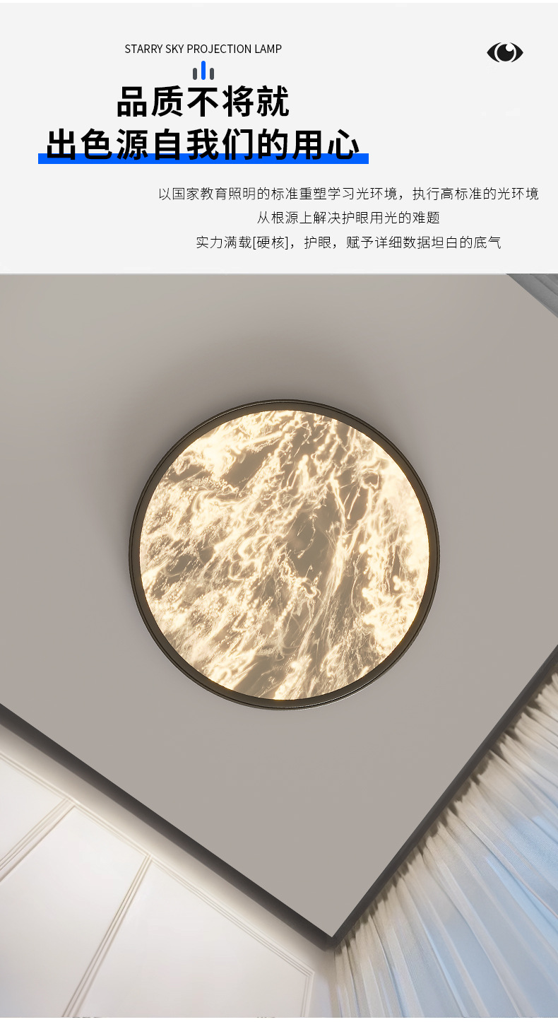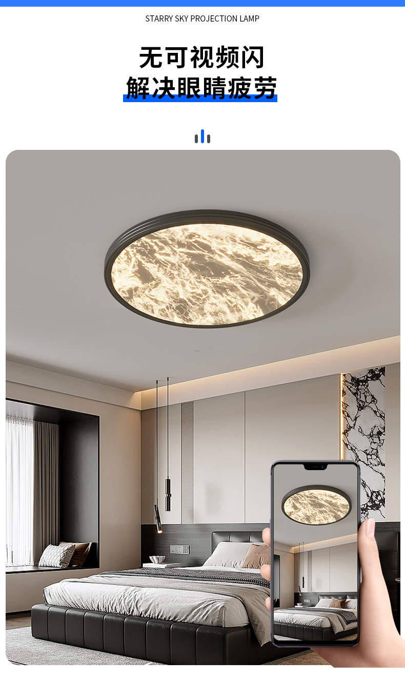 Lámpara de techo de dormitorio, viento crema, estrellas, nubes, lámpara de techo de dormitorio principal, lámpara de sala de protección ocular de espectro completo, lámpara de Zhongshan