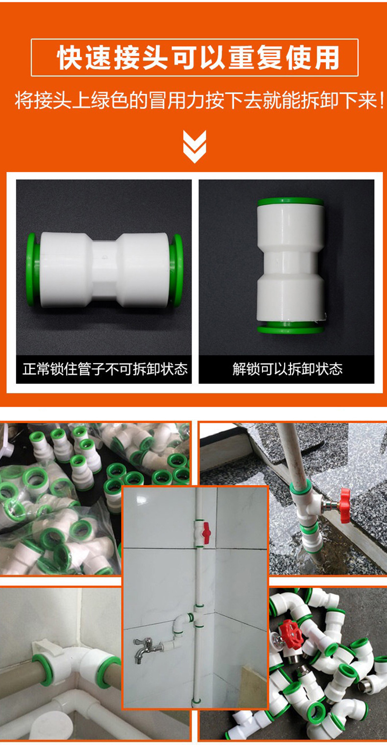 Suministro de Agua PVC conexión rápida engrosada junta de expansión rápida plástico viscosa enchufe engrosado gris suministro de agua accesorios de tubería