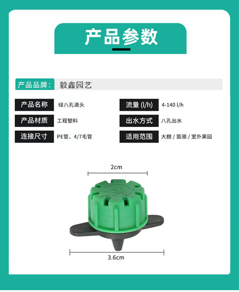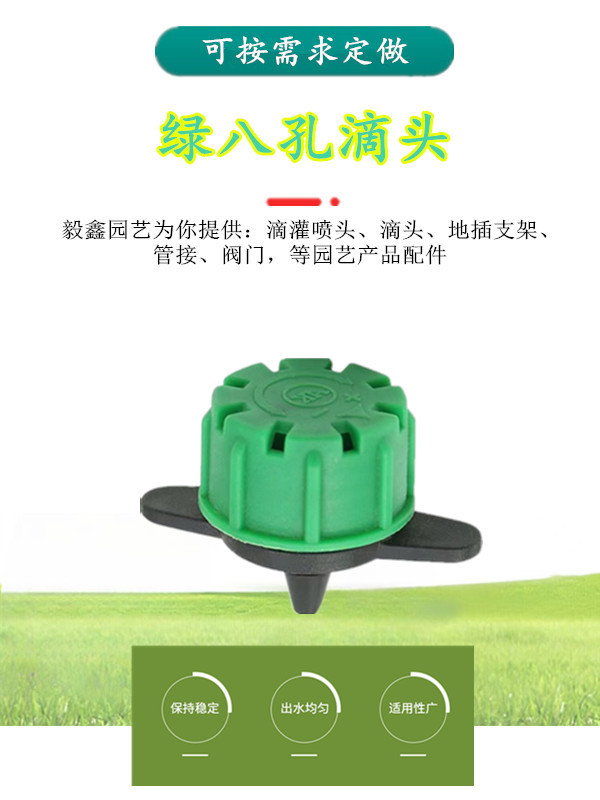 Nuevo tipo verde de ocho agujeros de goteo verde compensación de presión de caudal ajustable equipo de riego de goteo accesorios de jardinería