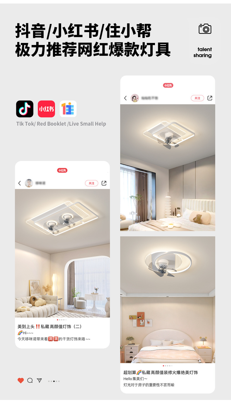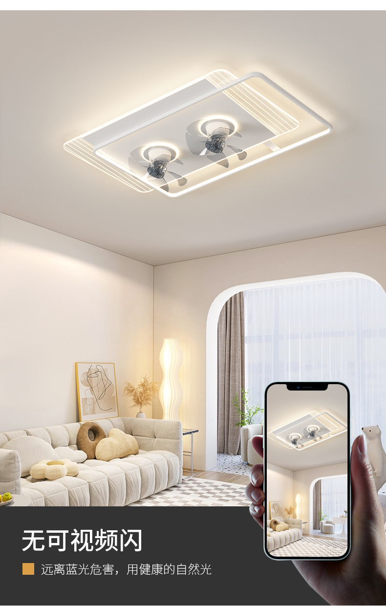 Minimalista, moderno, inteligente y cálido ambiente de ventilador de lámpara para toda la casa, combinación de lámparas y luminarias de la atmósfera de la sala de estar del dormitorio