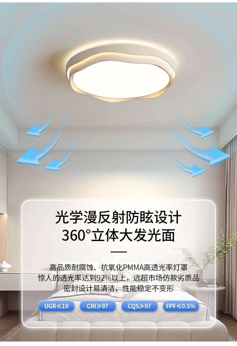 lámpara de techo de espectro completo, lámpara de dormitorio principal ultrafina de alto nivel, lámpara de sala de estar simple y moderna, lámpara Zhongshan