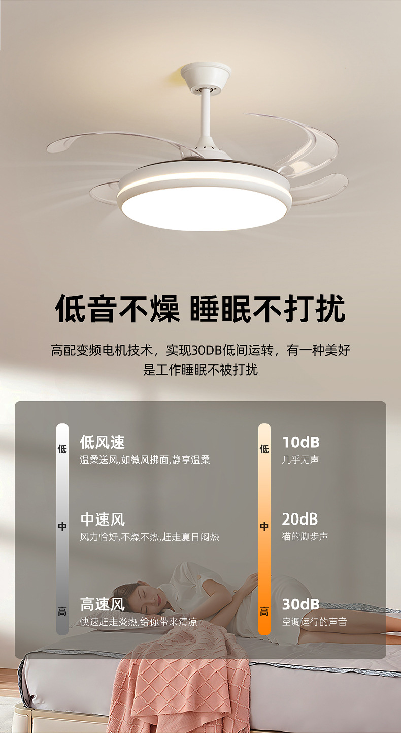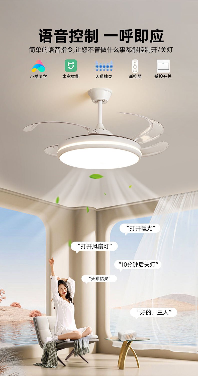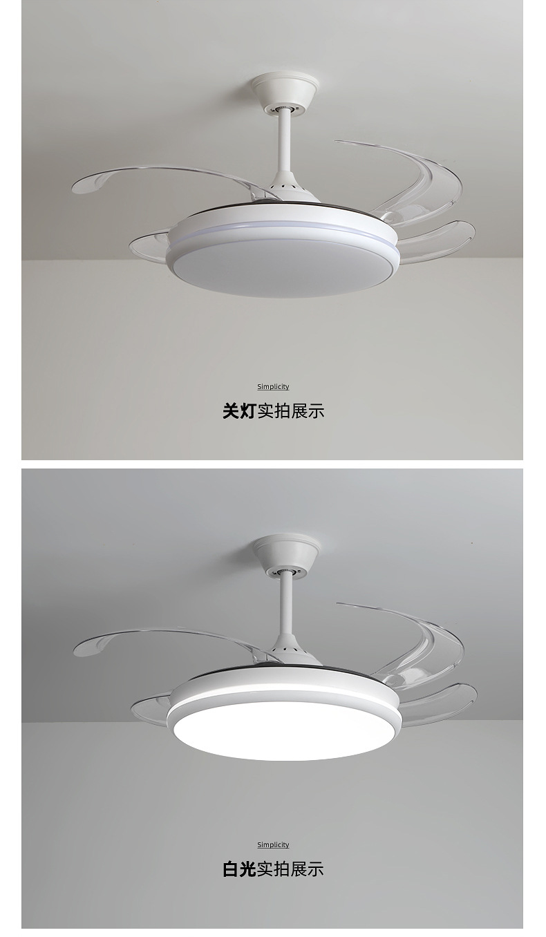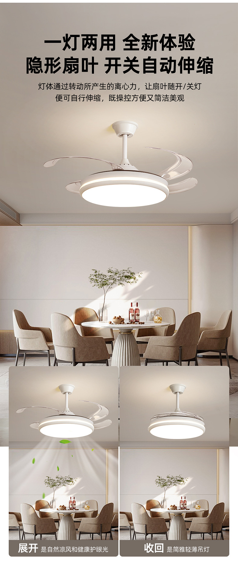 Sala de estar dormitorio moderno simple ventilador sin hoja lámpara de techo lámpara Zhongshan alta sensación de ventilador invisible combinación de lámpara