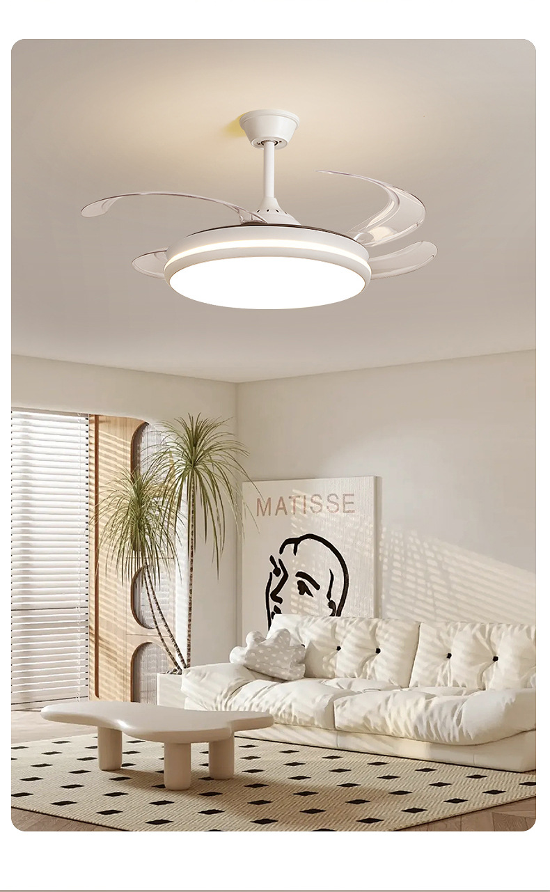 Lámpara de ventilador sin hoja 2025 nueva simple y moderna cálida protección de ojos inteligente ventilador de techo luz de frecuencia variable de la sala de estar luz principal