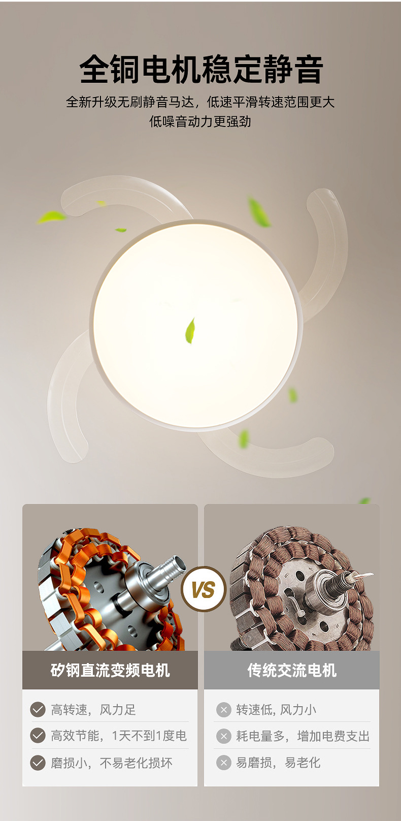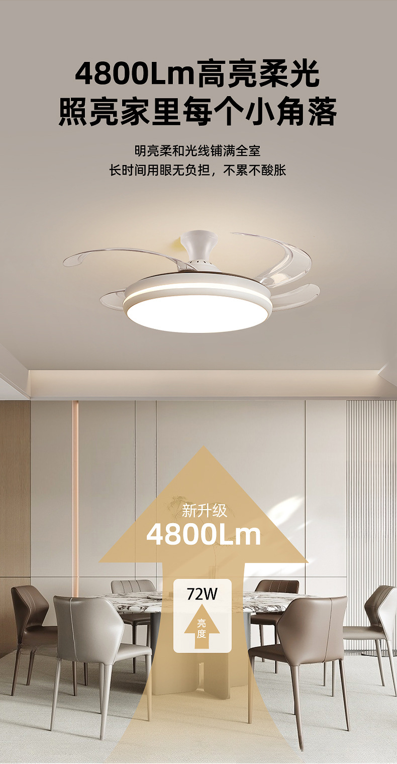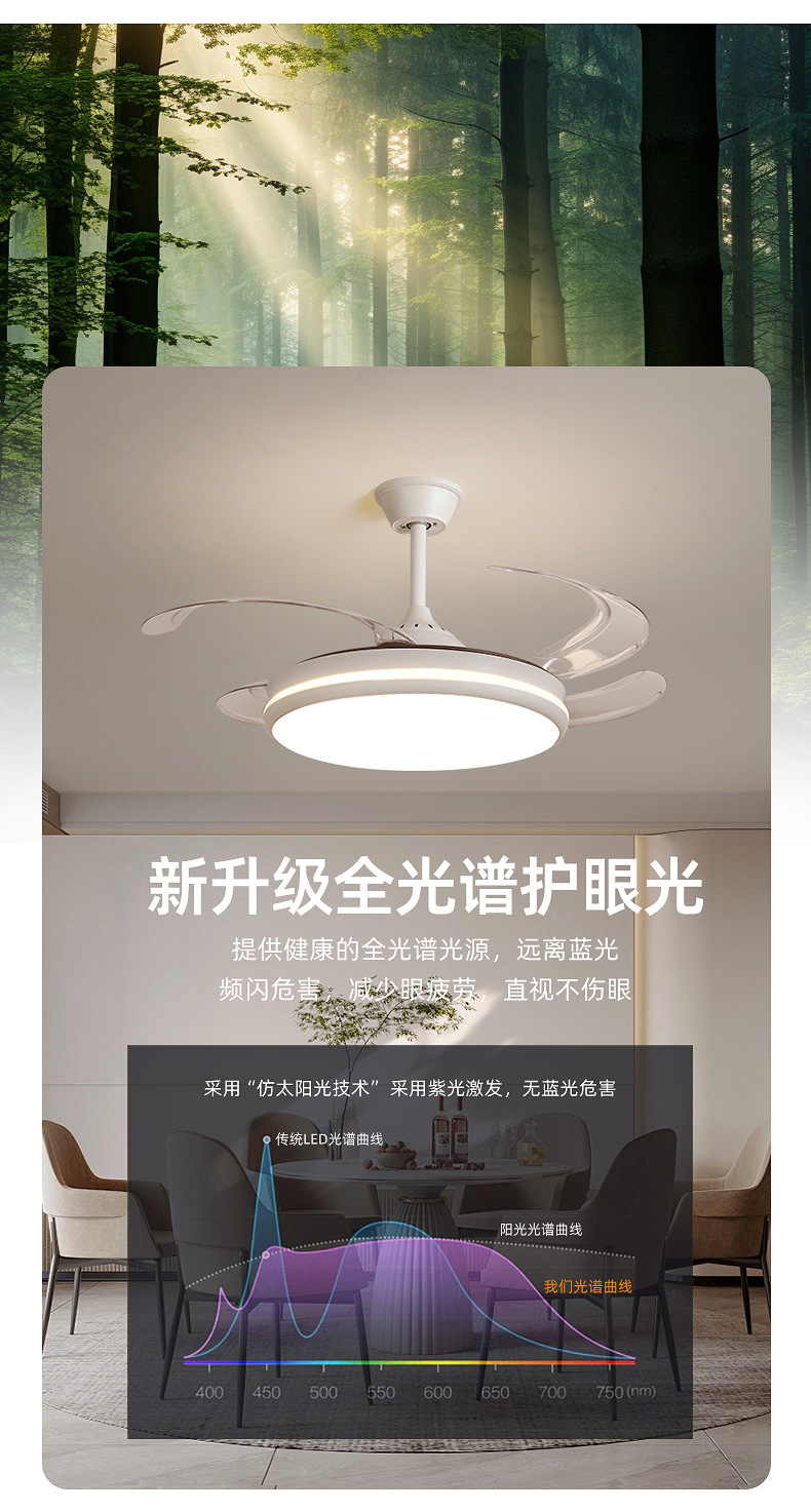 Sala de estar sin ventilador lámpara de ventilador de espectro completo protección ocular dormitorio comedor silencioso paquete de lámpara de techo simple moderno