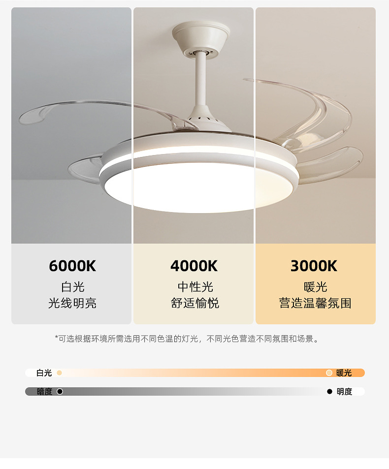 Luz de ventilador de control remoto inteligente D con atenuación de tres colores Dormitorio doméstico con atenuación de tres colores Luz de ventilador de habitación infantil Luz de ventilador de araña