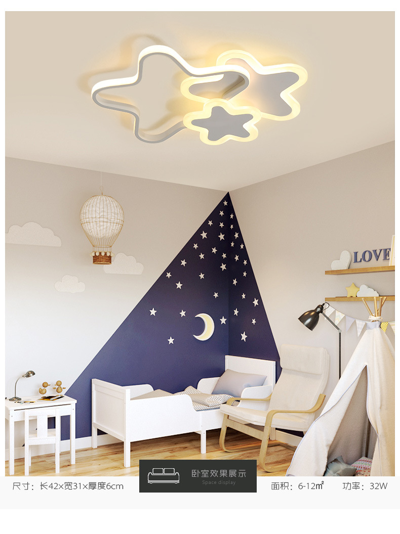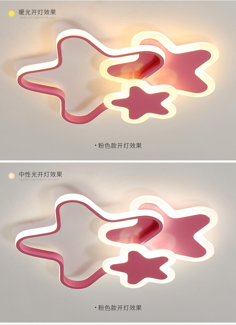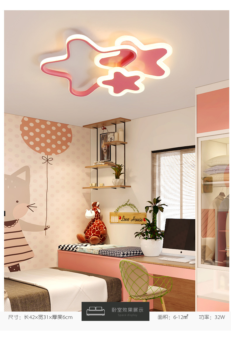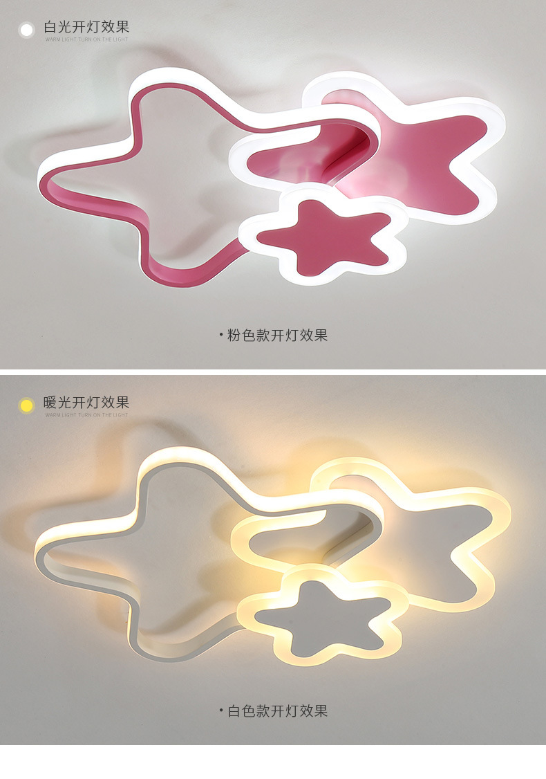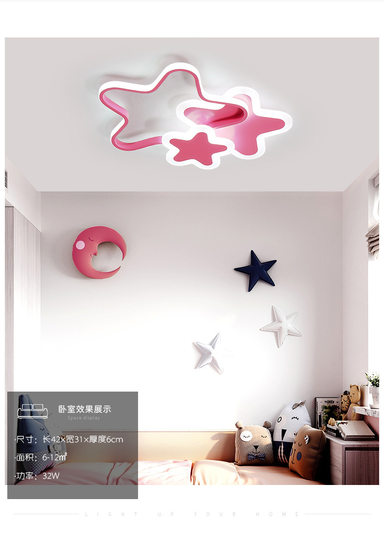 Lámpara de estrella de pentaco de espectro completo lámpara de habitación de chicas lámpara de techo del dormitorio de princesa creativa led lámpara de estrella de habitación de niños