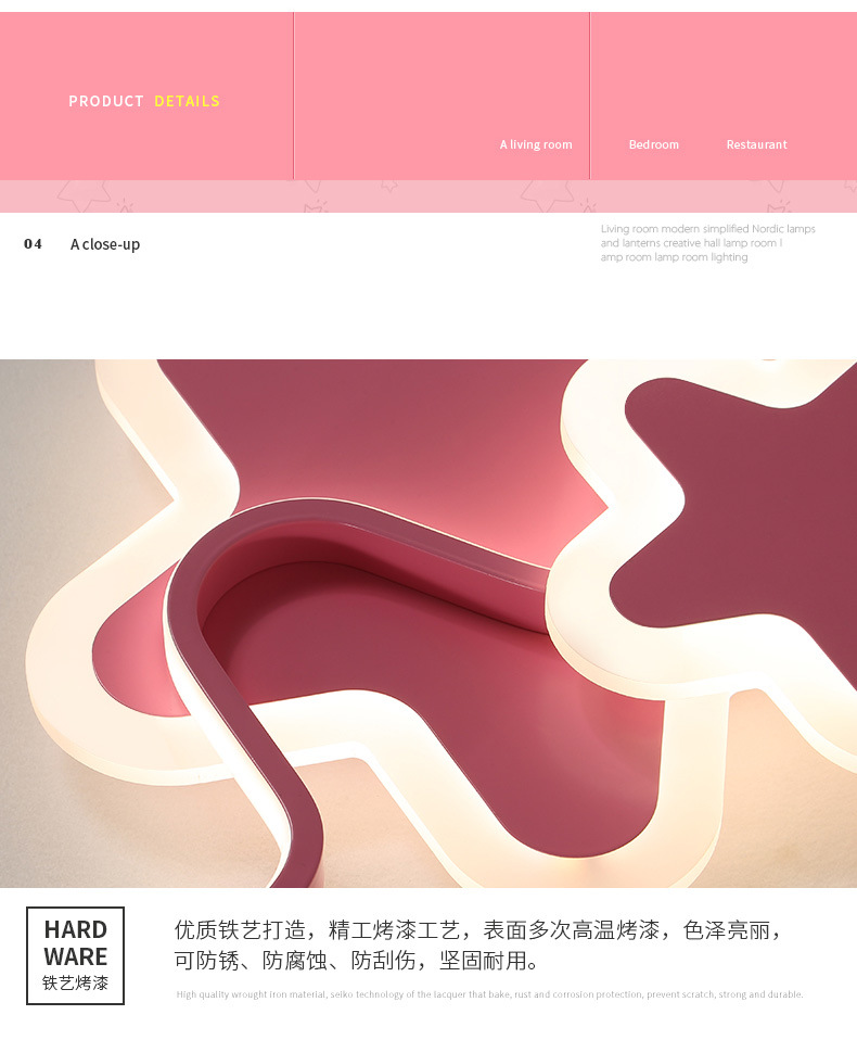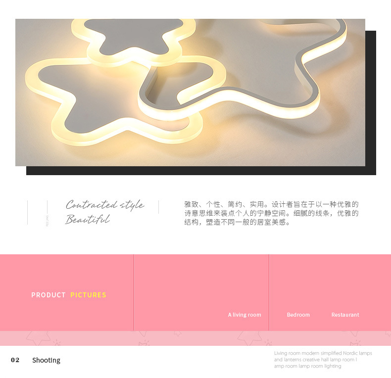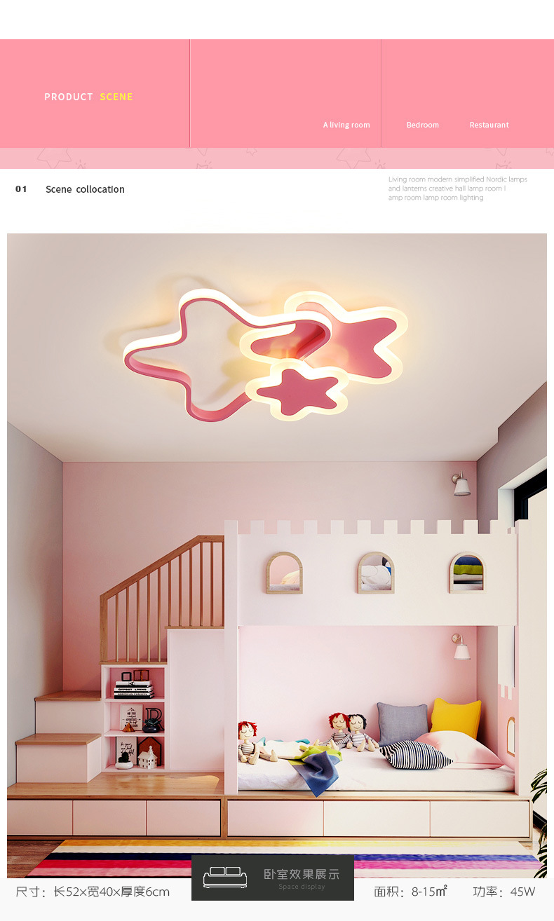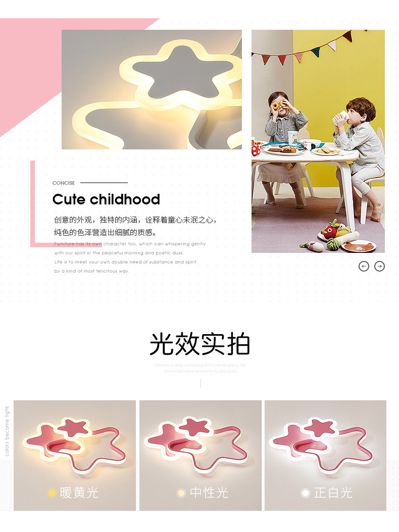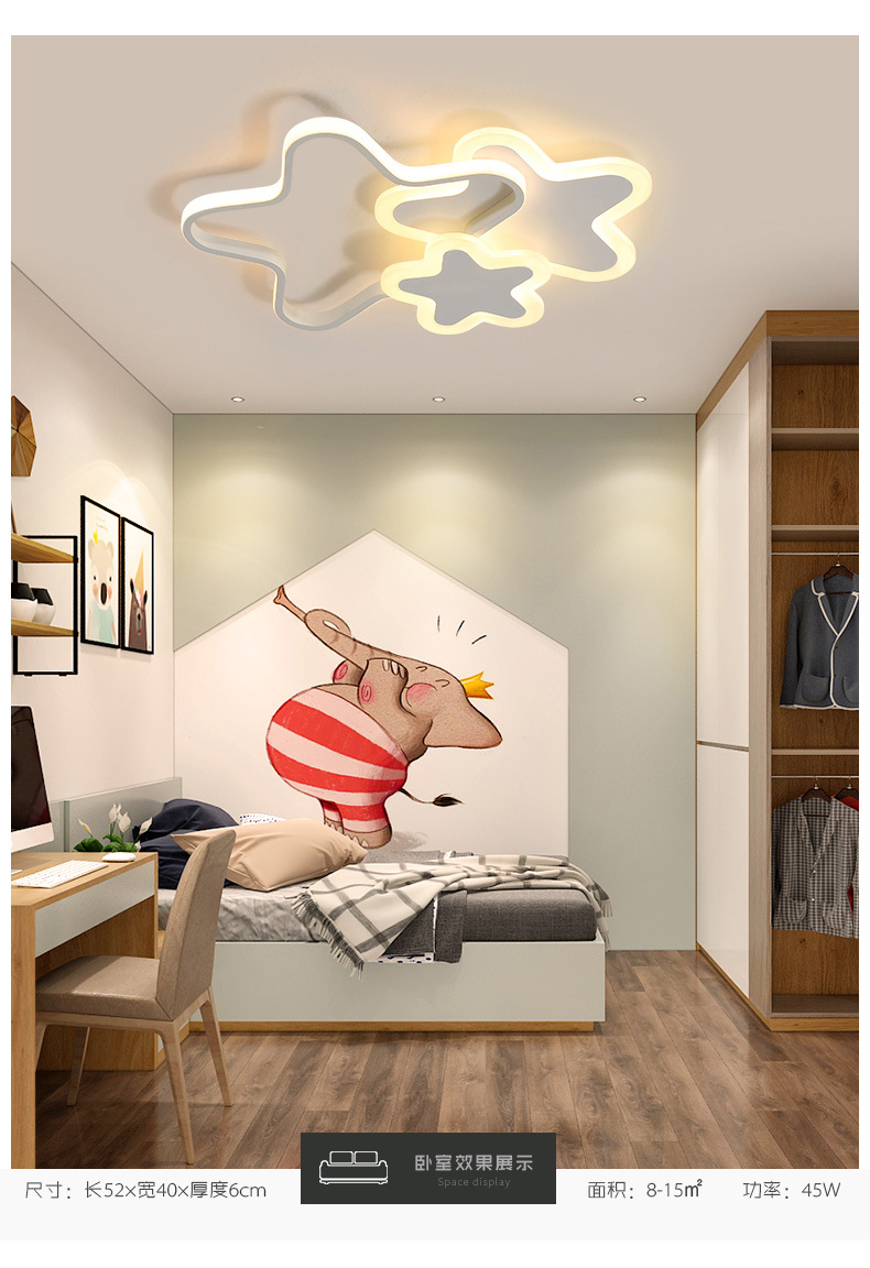 Lámpara de estrella de pentaco de espectro completo lámpara de habitación de chicas lámpara de techo del dormitorio de princesa creativa led lámpara de estrella de habitación de niños