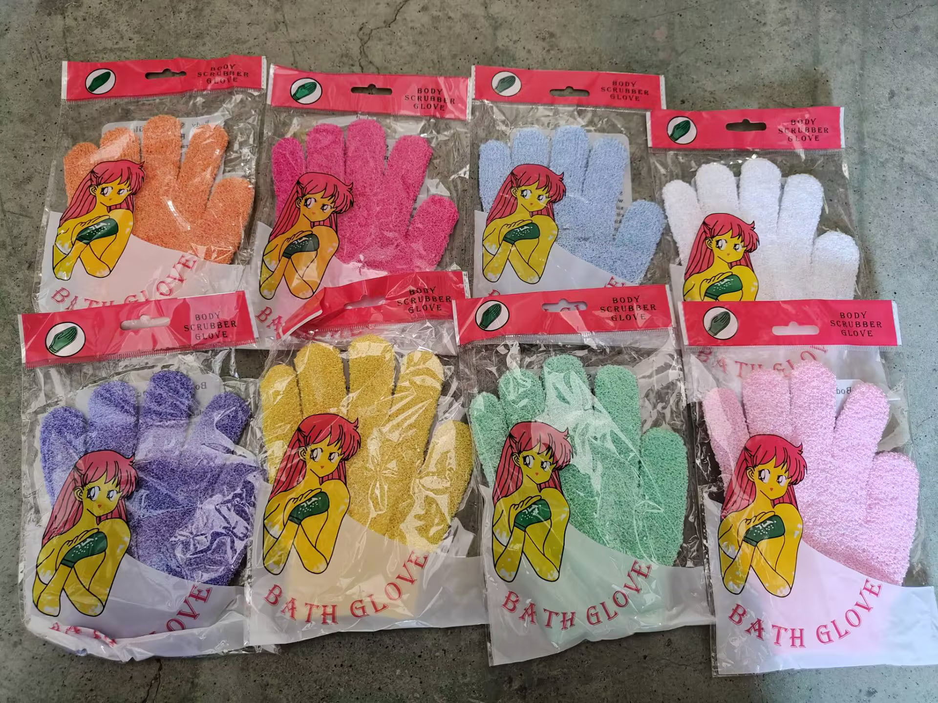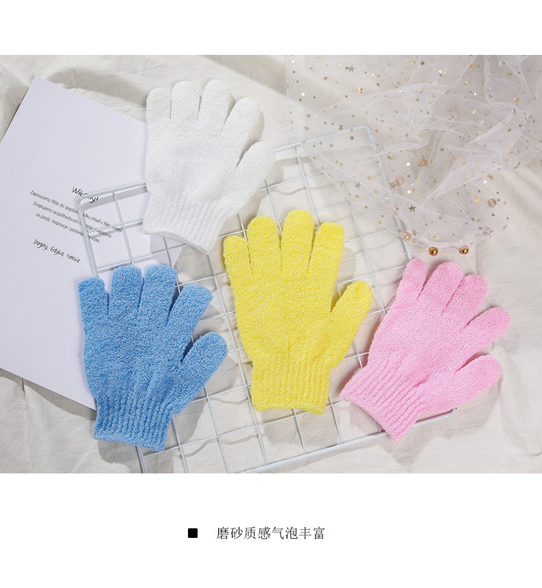 Hotel guantes de nylon toallas cinco dedos utensilios de baño de doble cara guantes de baño para el hogar