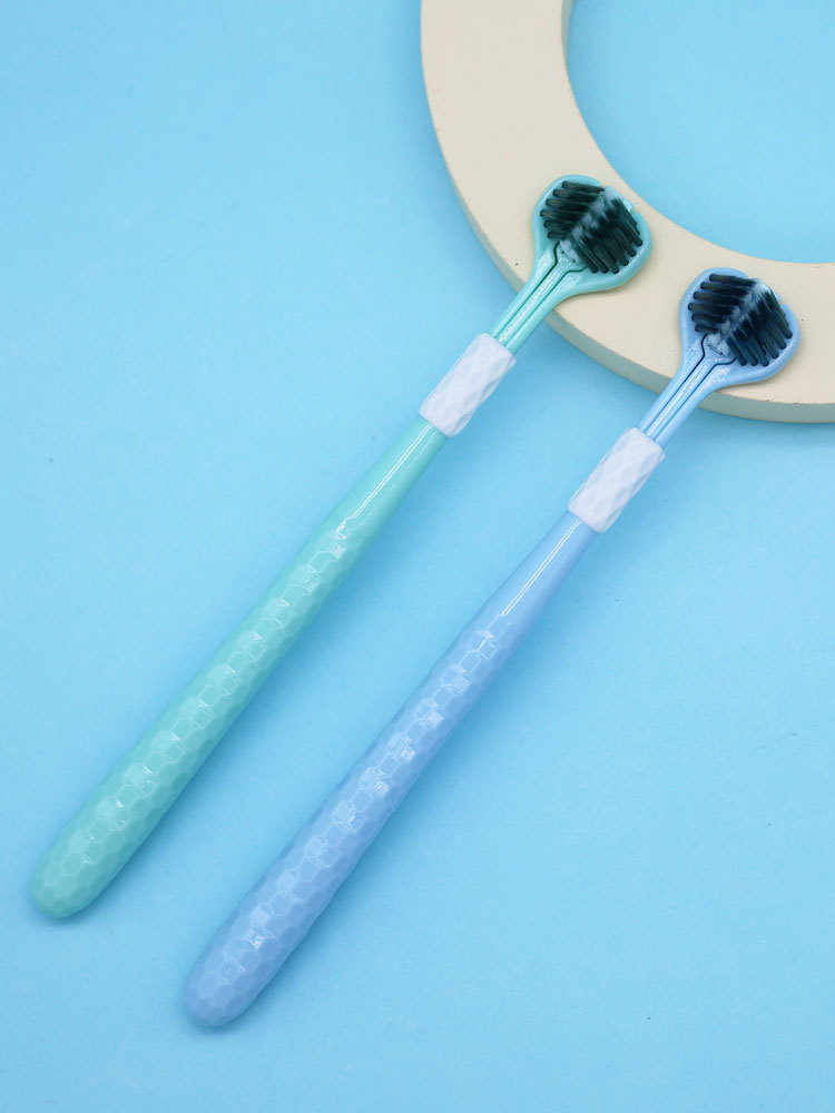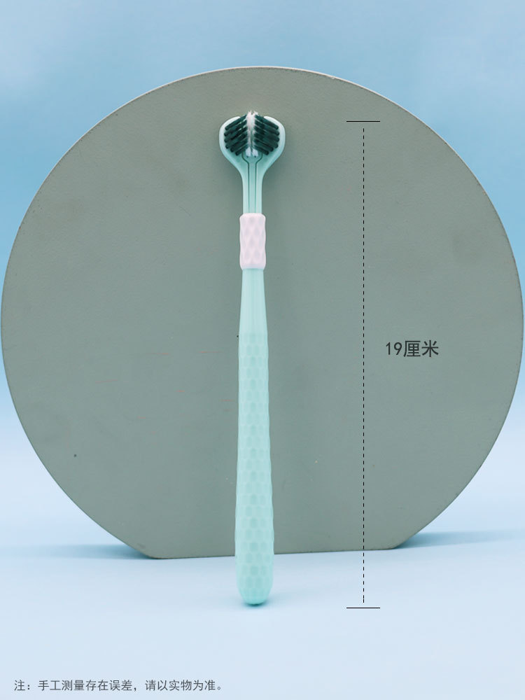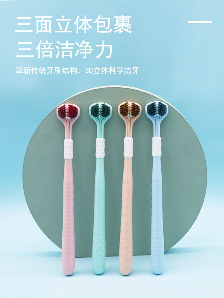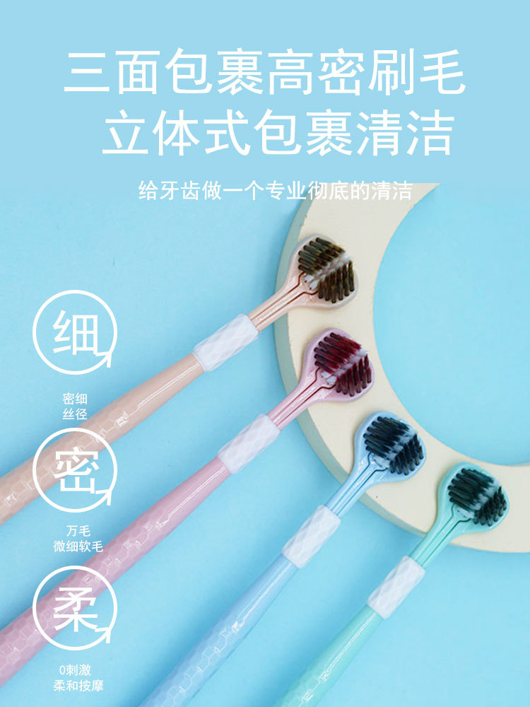 Cepillo de dientes de tres caras para adultos de pelo suave para adultos para parejas de hombres y mujeres tridimensionales sin esquina muerta tipo de envoltura de raspador de lengua de tres extremos