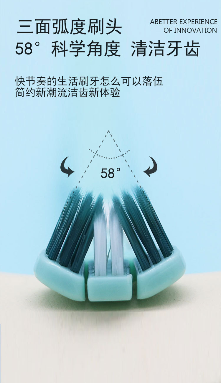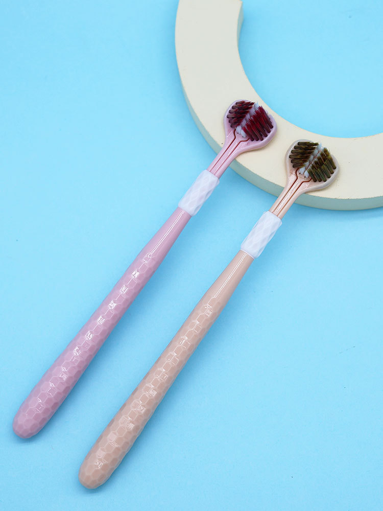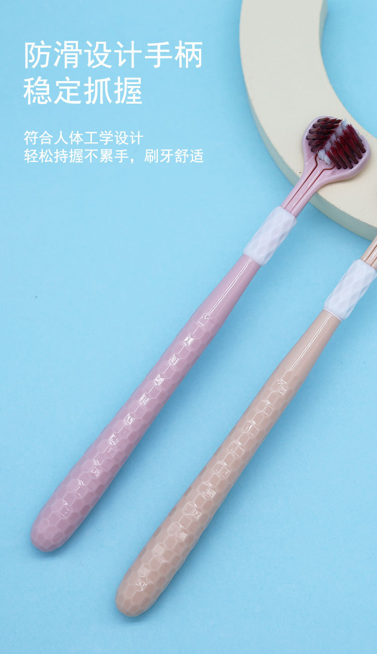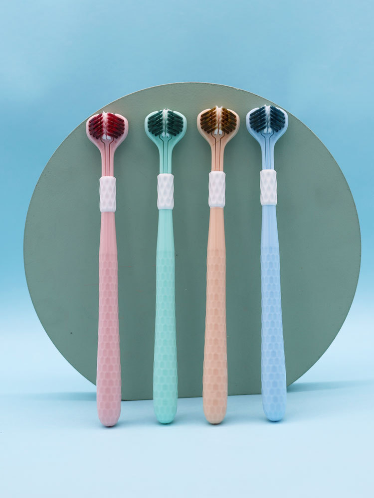 Cepillo de dientes de tres caras para adultos de pelo suave para adultos para parejas de hombres y mujeres tridimensionales sin esquina muerta tipo de envoltura de raspador de lengua de tres extremos