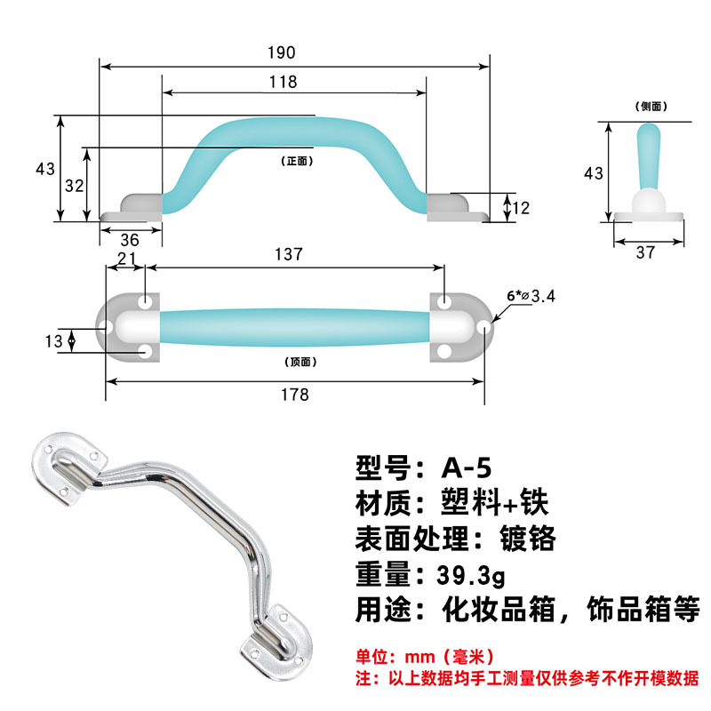 A - 6 pequeño mango de plástico maleta de mano accesorios maleta de herramientas de mano