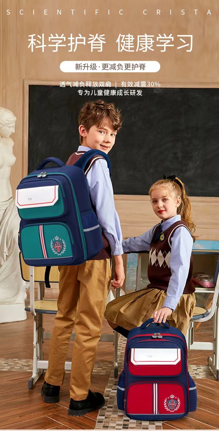 Mochila de escolares para niños de primaria 1 a 6 grados mochila de hombro de estilo británico de gran capacidad de protección contra derramamientos de aguas para reducir la carga