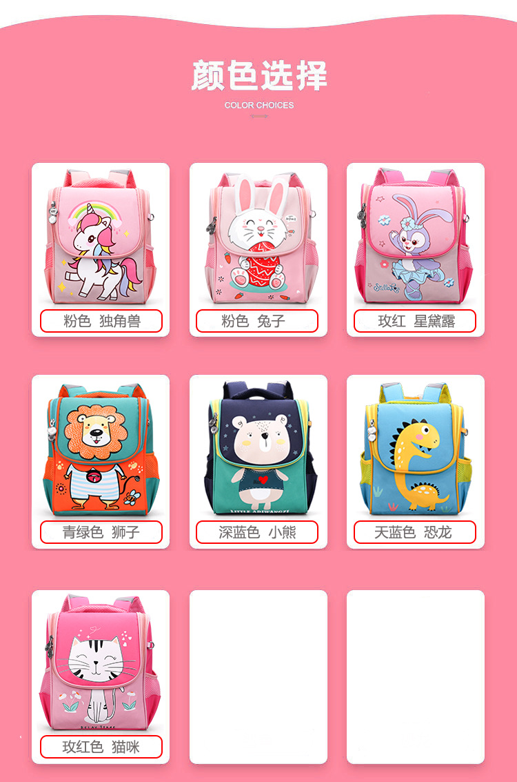 | Color | Oso azul oscuro, jirafa azul cielo, unicornio rosa, estrella rosa Dai lu, gatito rojo rosa, León verde turquesa, conejo rosa |