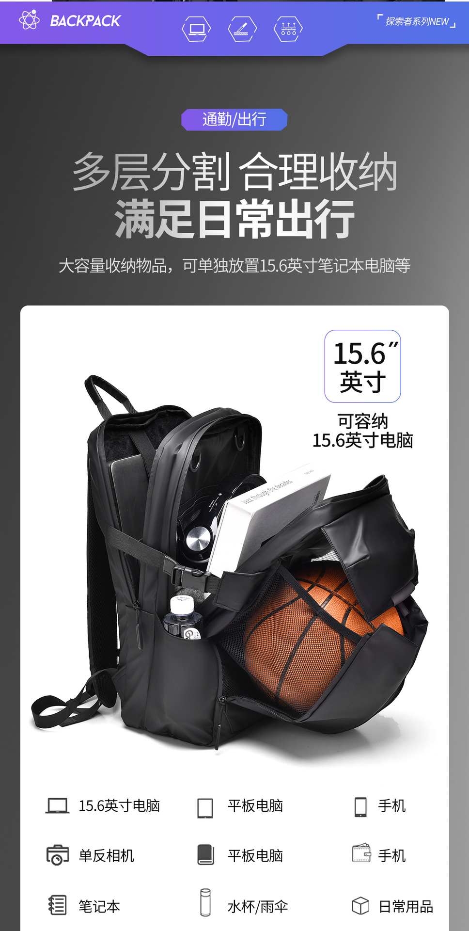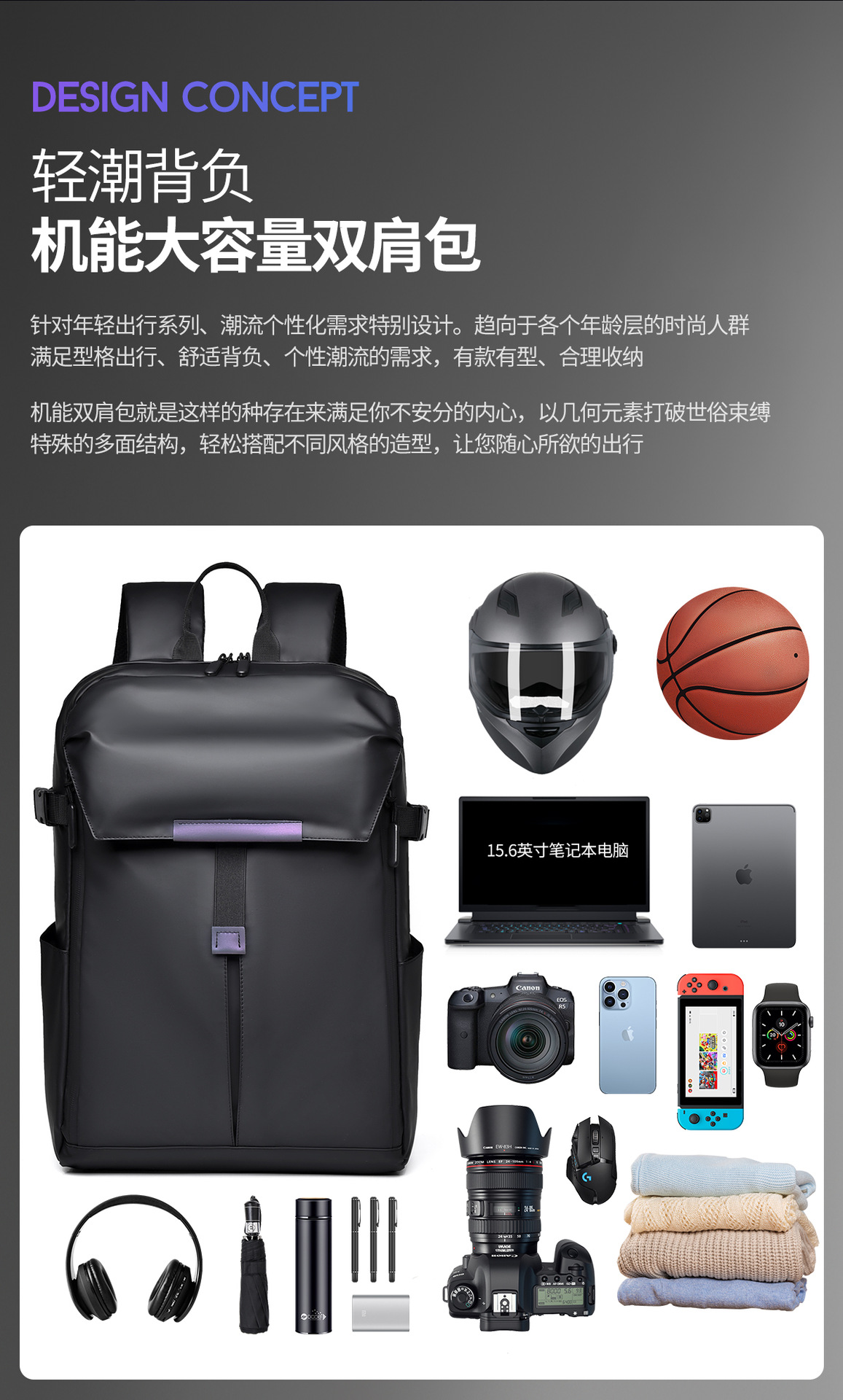 Mochila casual de los hombres 2024 nuevo viaje de gran capacidad bolsa de ordenador multifuncional casco de baloncesto mochila