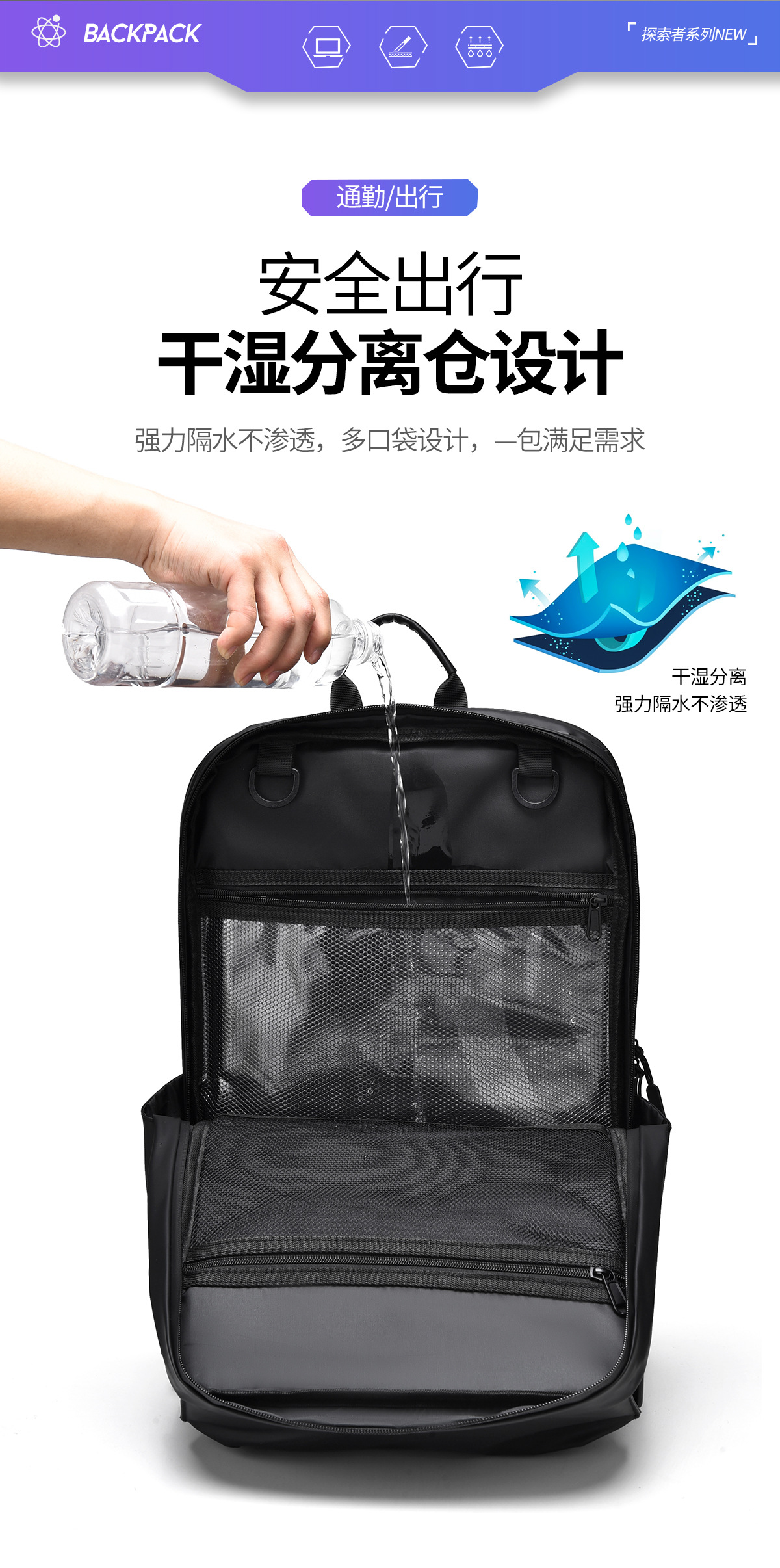 Mochila 2023 transfronteriza simple ocio bolsa de viaje pollo estudiante mochila de gran capacidad Multi-compartimiento mochila impermeable