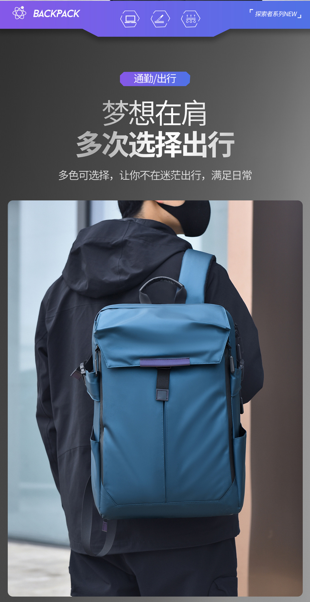Mochila de moda para hombres, mochila de negocios, moda minimalista, estilo coreano, mochila de viajes de estudiantes, mochila de computadora.