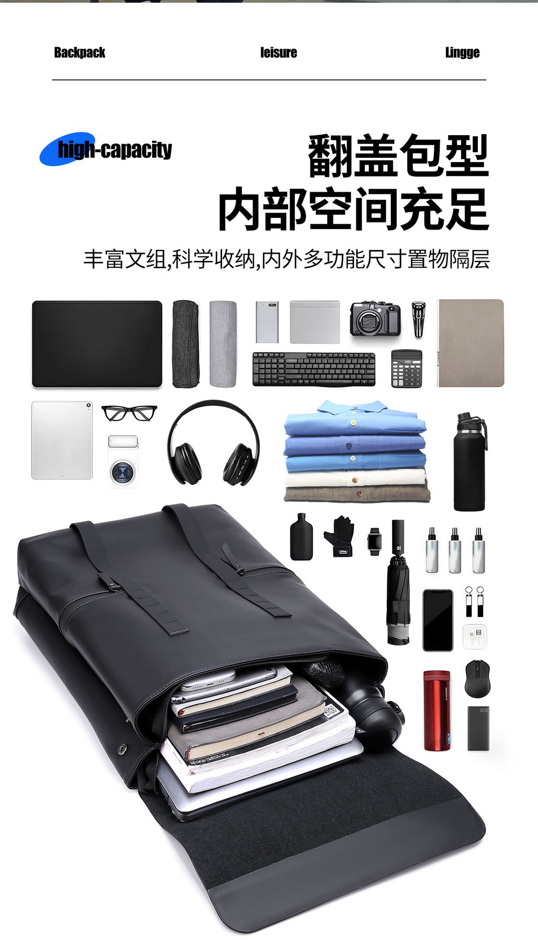 Mochila para hombres, mochila de computadora de gran capacidad, mochila escolar de estudiantes universitarios japoneses, sensación de cuero transfronterizo, mochila impermeable de viaje ocio.
