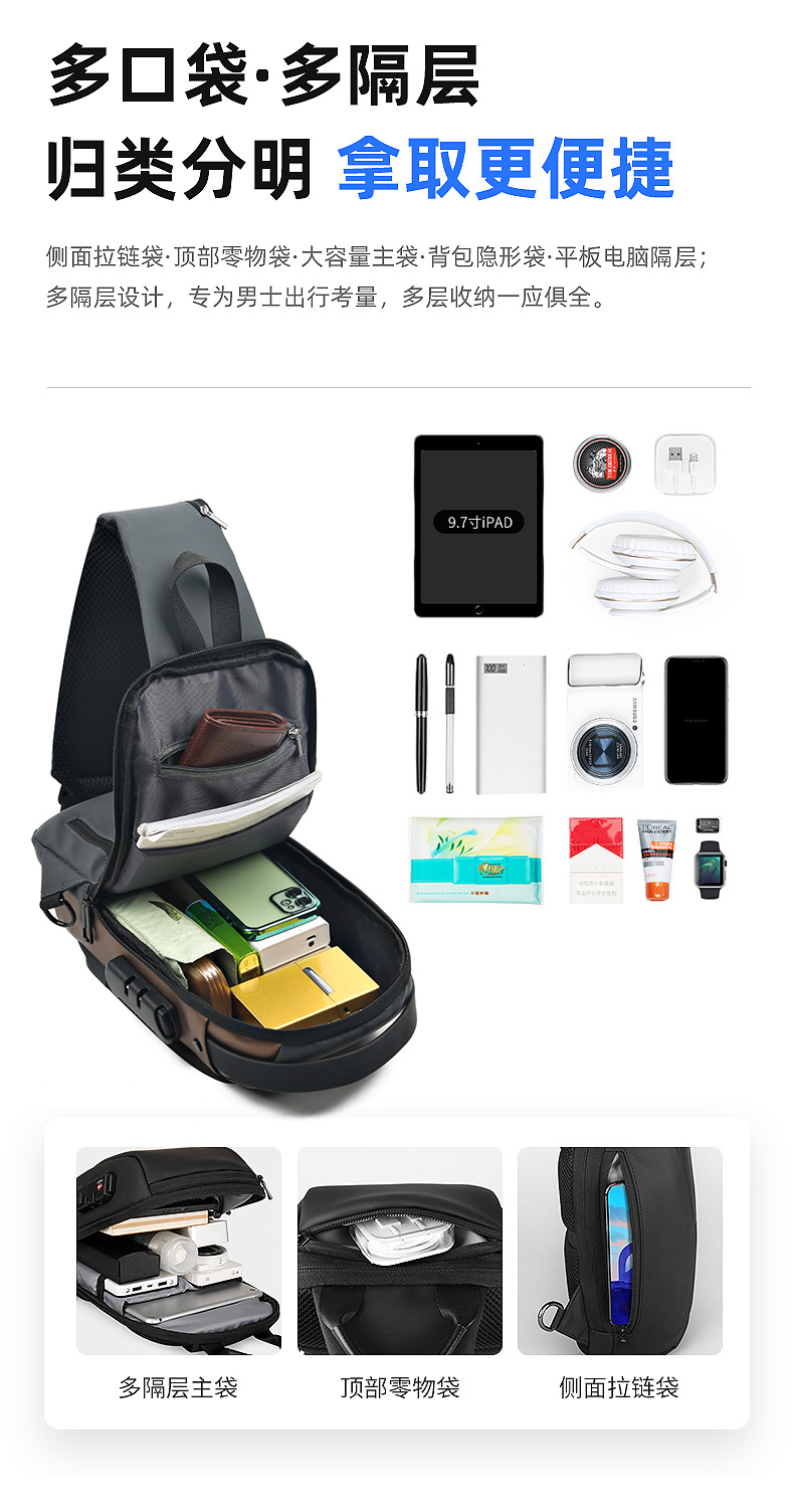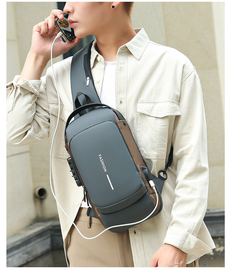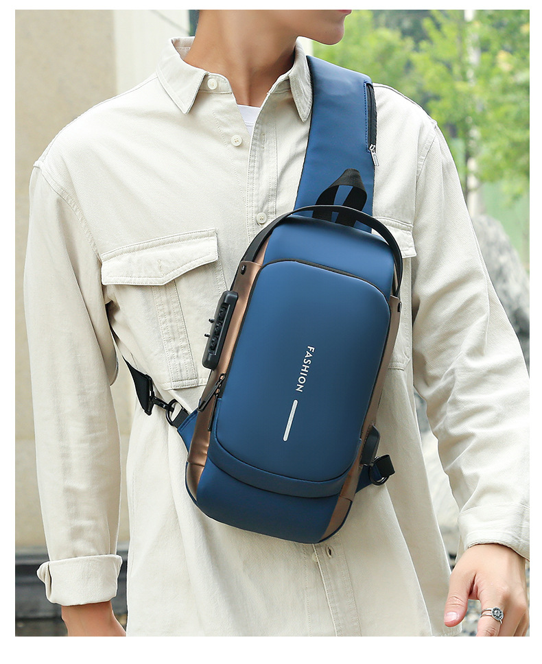 Bolsa de pecho de motocicleta contraseña antirrobo bolsa de hombre Bolsa de hombro de moda europea y americana bolsa de mensajero multifuncional de ocio deportivo de negocios