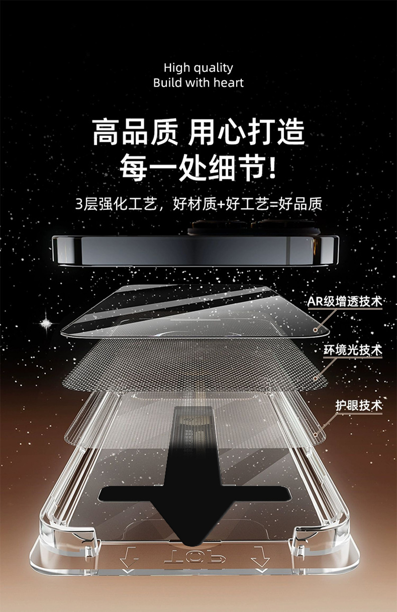 | Características de la película | Alta definición, a prueba de explosiones, a prueba de polvo, a prueba de huellas dactilares, a prueba de caídas, pantalla completa, a prueba de voyeurismo, caja de segundos |