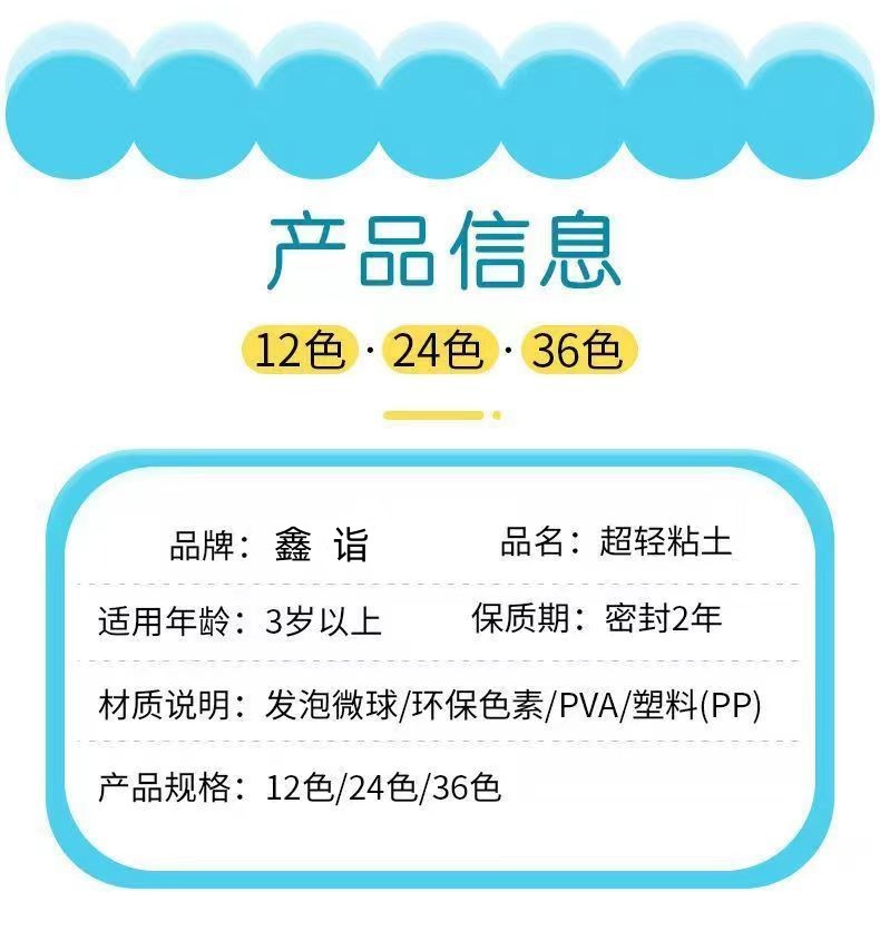 | Especificaciones | Arcilla ligera embolsada de 12 Colores + herramientas [27cm],24 colores en bolsas de arcilla ligera + herramientas [27cm],36 colores en bolsas de arcilla ligera + herramientas [27cm],Enviar aleatoriamente 5 bolsas pequeñas sin herramientas coincidentes |