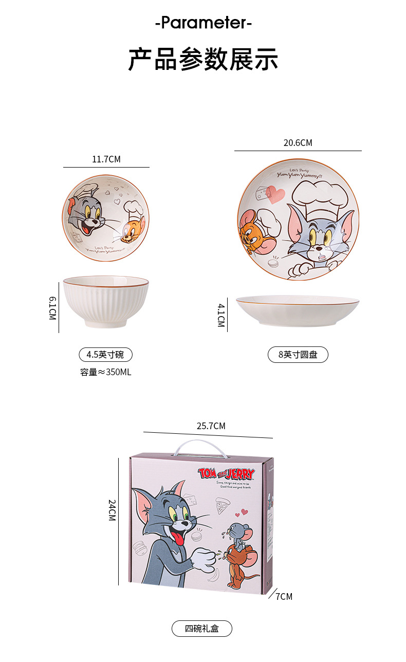 | Colores | Tazón de arroz vertical de 4,5 pulgadas: gato y ratón tipo B,Tazón de arroz vertical de 4,5 pulgadas: gato y ratón tipo C,Set de Platos para Snacks de Tom y Jerry - Surtido de 4 Piezas (Tom + Jerry + Tuffy + Spike),Plato hondo de 8 pulgadas con rayas verticales de Tom y Jerry, modelo A,Plato hondo de 8 pulgadas con rayas verticales de Tom y Jerry, modelo B,Plato hondo de 8 pulgadas con rayas verticales de Tom y Jerry, estilo C,Plato hondo de 8 pulgadas con rayas verticales de Tom y Jerry, estilo D,Plato hondo de 8 pulgadas con rayas verticales de Tom y Jerry - Juego mixto de 4 piezas (Estilo A + Estilo B + Estilo C + Estilo D) |