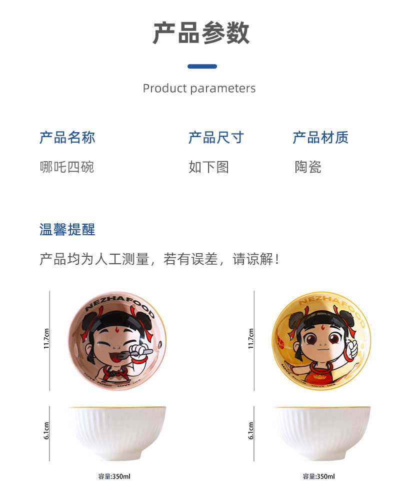 | Especificaciones | [Young Nezha] Tazón de arroz rosa de 4,5 pulgadas,[Young Nezha] Tazón de arroz rojo de 4,5 pulgadas,[Young Nezha] cuenco de arroz amarillo de 4,5 pulgadas,[Young Nezha] Cuenco de arroz marrón de 4,5 pulgadas,[Young Nezha] Rojo amarillo-dos cuencos de arroz de 4,5 pulgadas,[Young Nezha] Pink Brown-dos cuencos de arroz de 4,5 pulgadas,[Young Nezha] Cuatro cuencos de arroz de 4,5 pulgadas,[Young Nezha] Caja de regalo: cuatro cuencos de arroz de 4,5 pulgadas |