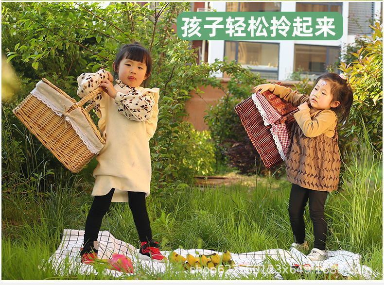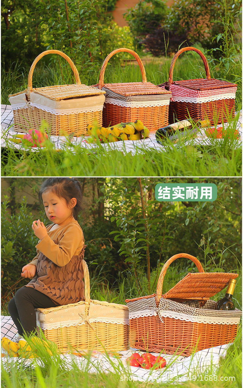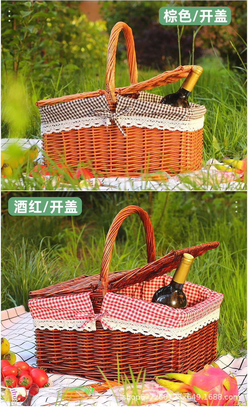 Excursión de primavera personalizada, cesta de picnic portátil de sauce pastoral, cesta de comedor plegable con tapa, accesorios para fotos, picnic al aire libre