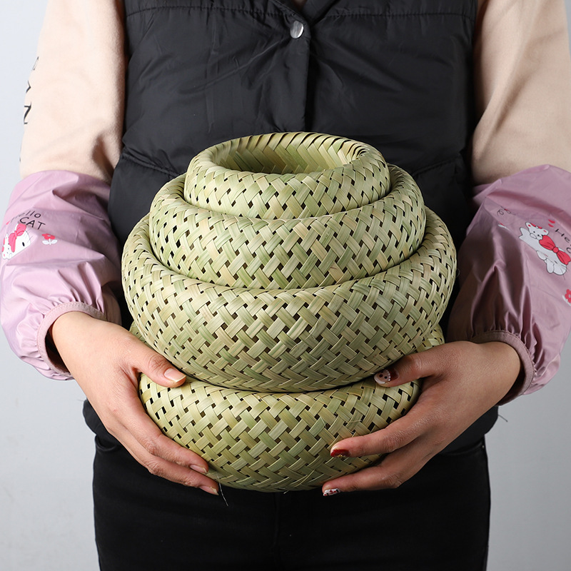 Ventilador tejido de bambú hecho a mano Ventilador tejido de bambú estilo retro chino ventilador tejido de bambú de pintura grande ventilador redondo engrosado Pu ventilador verde