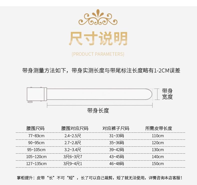 | Colores | Leopardo dorado cuadrado [sin cinturón],Leopardo plateado cuadrado,Coche deportivo Jaguar dorado [sin cinturón],Coche deportivo Jaguar plateado,Dragón dorado cuadrado [sin cinturón],Dragón plateado cuadrado [sin cinturón],Palabra B de Zhengyin [Sin cinturón],Coche deportivo B [sin cinturón],Zhengjin B [sin cinturón],Coche deportivo redondo Leopard dorado [sin cinturón],Coche deportivo redondo Leopard plateado [sin cinturón],Coche deportivo redondo color pistola leopardo [sin cinturón],Leopardo dorado con bordes [sin cinturón],Leopardo plateado con bordes [sin cinturón],Leopardo de pistola con bordes 【Sin corta】,Coche deportivo dorado Leopard 【Sin corta】,Coche deportivo plateado Leopard [sin cinturón],Leopardo deportivo color pistola [sin cinturón],Jaguar dorado [sin cinturón],Jaguar plateado [sin cinturón],Barras paralelas oblicuas doradas [sin cinturón],Barras paralelas oblicuas plateadas [sin cinturón],Color de pistola palabra P [sin cinturón],Color de pistola Y [sin cinturón],Triángulo dorado doble convexo [sin cinturón],Triángulo plateado doble convexo [sin cinturón],Cruz dorada [sin cinturón],Cruz de plata [sin cinturón],S dorado [sin cinturón],Plata S [sin cinturón],PVC de una sola correa por defecto 120,Dorado XL [Sin piel] [Sin cinturón],Silver XL [sin piel] [sin cinturón],Piel negra y fondo plateado [sin cinturón],Botón H de barra horizontal dorado [sin cinturón],Botón H de barra horizontal plateado [sin cinturón],Barra horizontal H hebilla color de la pistola [sin cinturón],Hebilla dorada en forma de I [sin cinturón],Hebilla en I plateada [sin cinturón],Hebilla en I de color pistola [sin cinturón],Hebilla águila dorada [sin cinturón],Hebilla águila plateada [sin cinturón] |