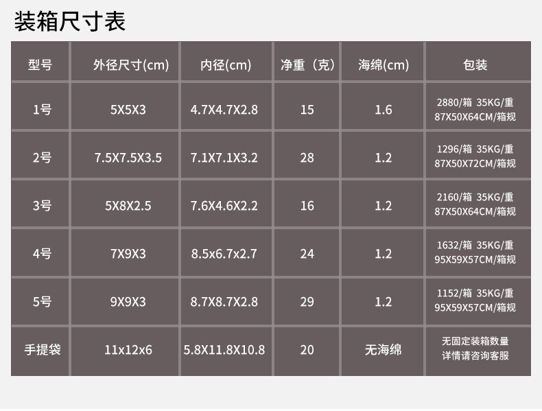 | Modelo de especificación | Gris negro; 5*5*3,Gris negro; 5*8*2.5,Gris negro; 7,5*7,5*3,5,Gris negro; 7*9*3,Gris negro; 9*9*3,Gris negro; bolso,Blanco rosa; 5*5*3,Blanco rosa; 5*8*2.5,Blanco rosa; 7,5*7,5*3,5,Blanco rosa; 7*9*3,Blanco rosa; 9*9*3,Blanco rosa; bolso,Blanco negro; 5*5*3,Blanco negro; 5*8*2.5,Blanco negro; 7,5*7,5*3,5,Blanco negro; 7*9*3,Blanco negro; 9*9*3,Blanco negro; bolso,Naranja negra; 5*5*3,Naranja negra; 5*8*2.5,Naranja negra; 7,5*7,5*3,5,Naranja negra; 7*9*3,Naranja negra; 9*9*3,Naranja negra; bolso,Rosa verde; 5*5*3,Rosa verde; 5*8*2.5,Rosa verde; 7,5*7,5*3,5,Rosa verde; 7*9*3,Rosa verde; 9*9*3,Rosa verde; bolso |