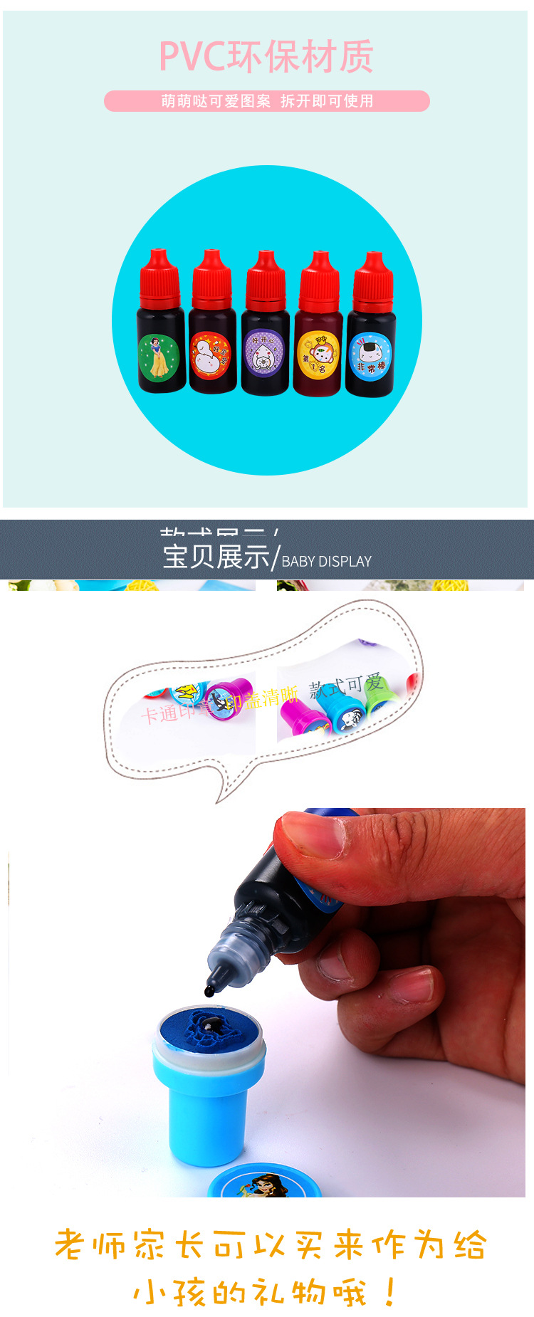 Fábrica directa de dibujos animados lindo patrón de los niños sello de aceite de impresión a base de agua aceite de impresión líquida de color