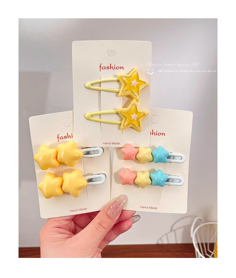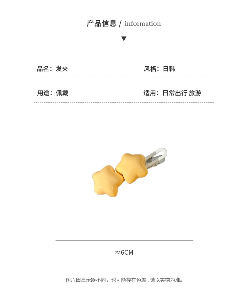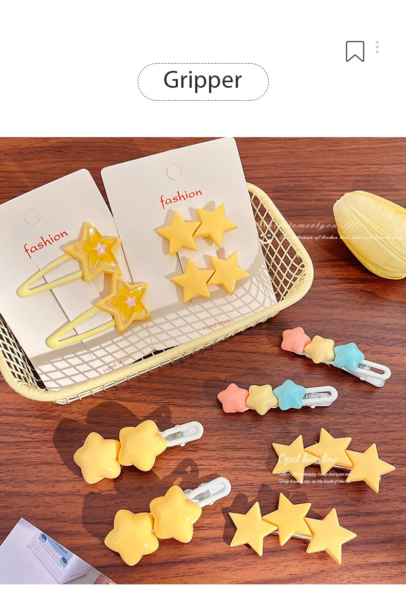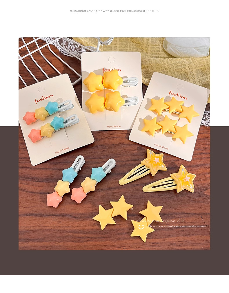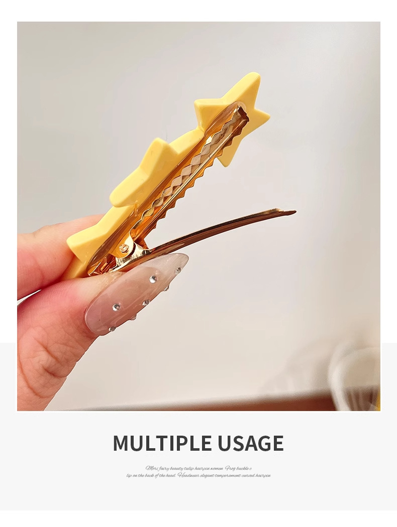 Horquilla de estrella amarilla dulce y linda, clip de flequillo en la frente femenina, cabello roto en el costado, clip de pico de pato, tocado