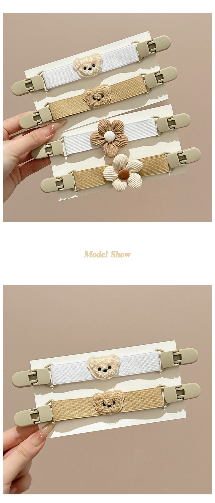 | Colores | 1 # oso caqi de unos 18cm,2 # oso blanco alrededor de 18cm,3 # flores blancas de unos 18cm,4 # flores caqi de unos 18cm |