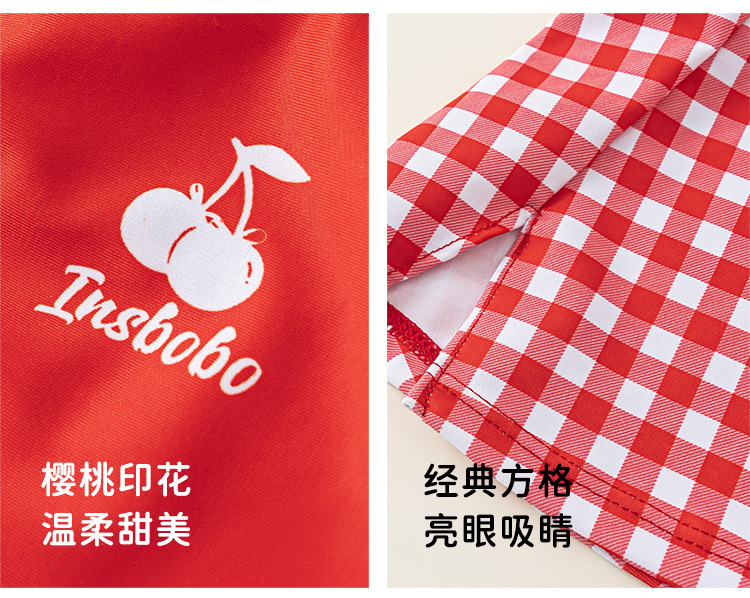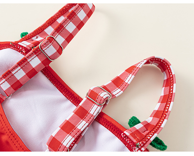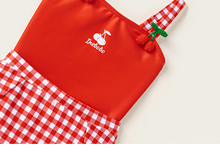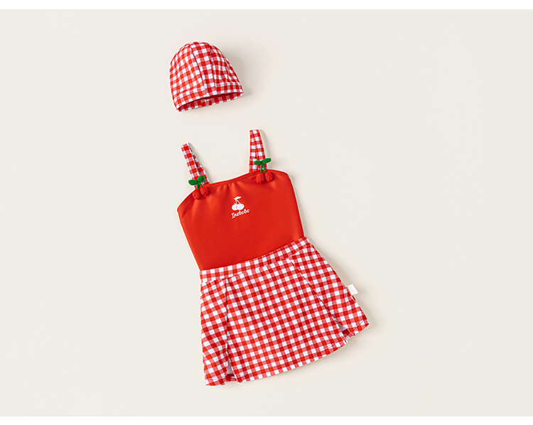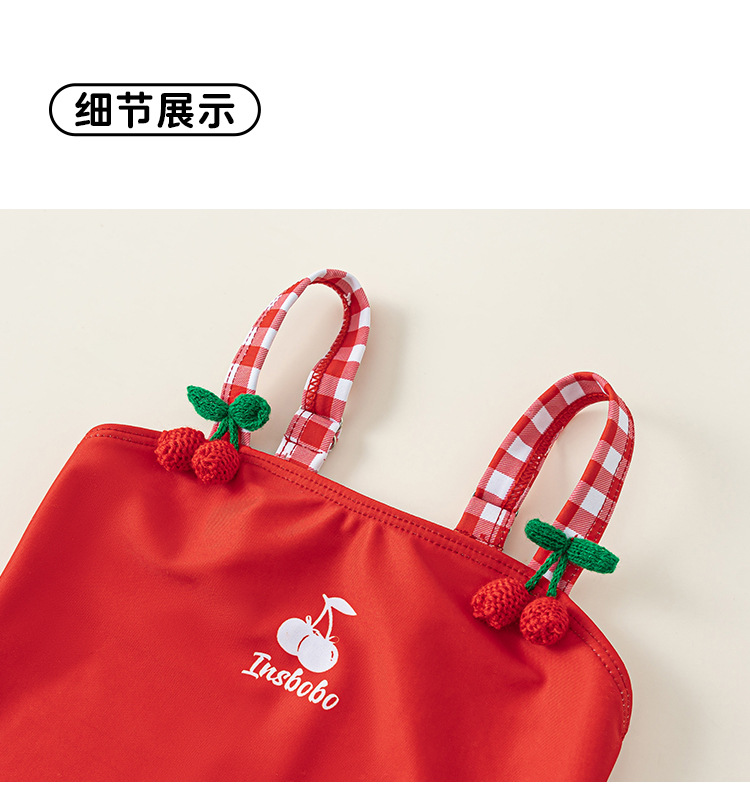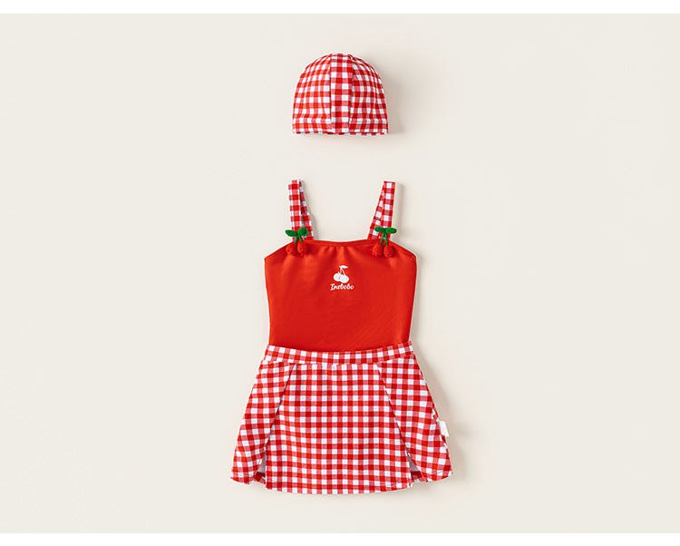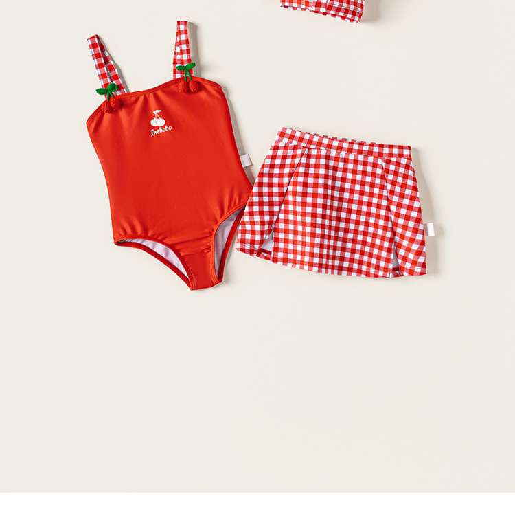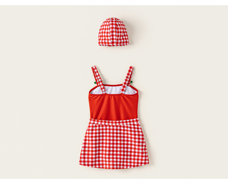 Youbao ropa para niños verano niños traje de baño honda dibujos animados cereza traje de baño de una pieza gorro de baño a cuadros traje de natación para niñas