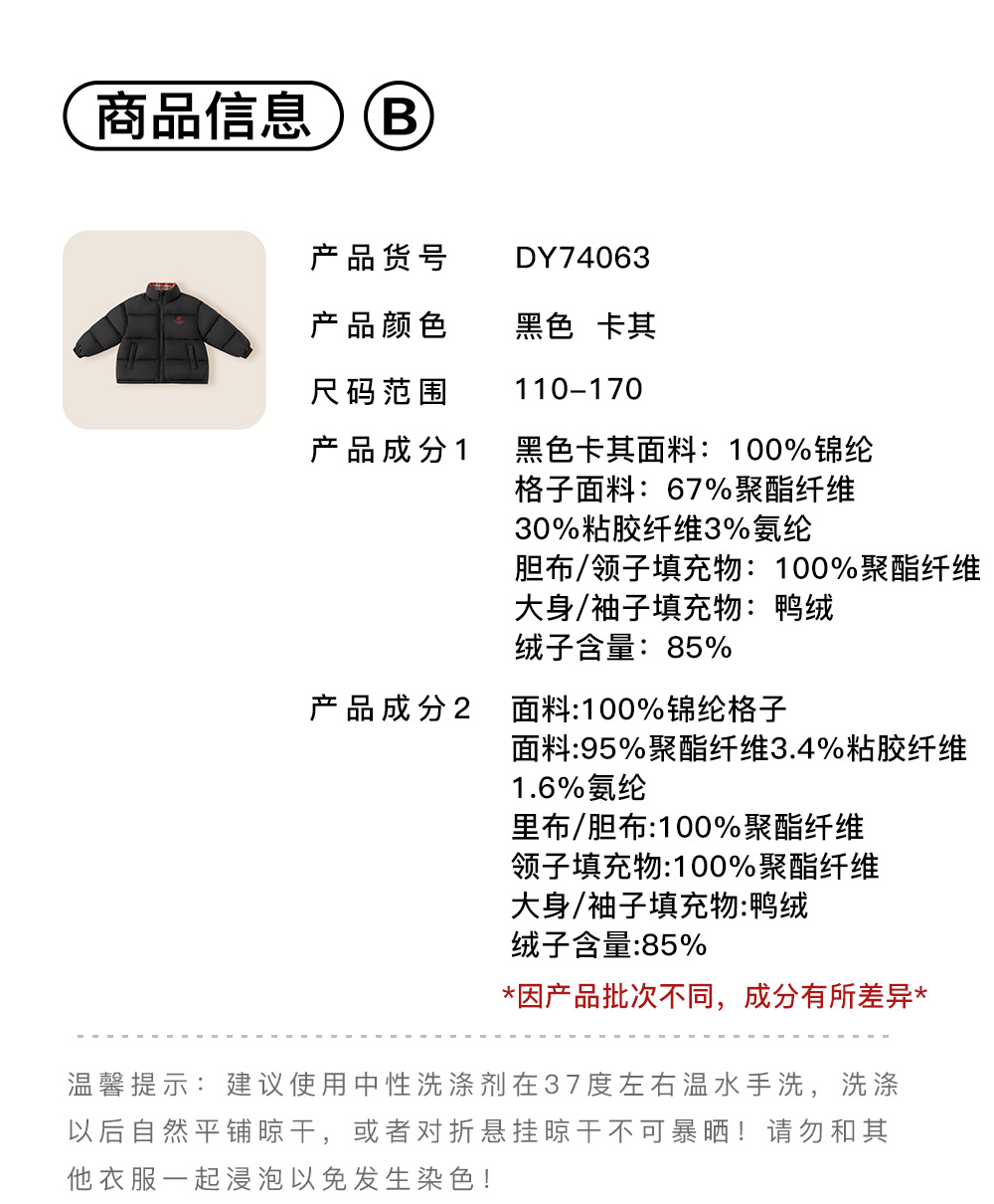 | Categoría del producto | Chaqueta de plumón infantil / interior de plumón |