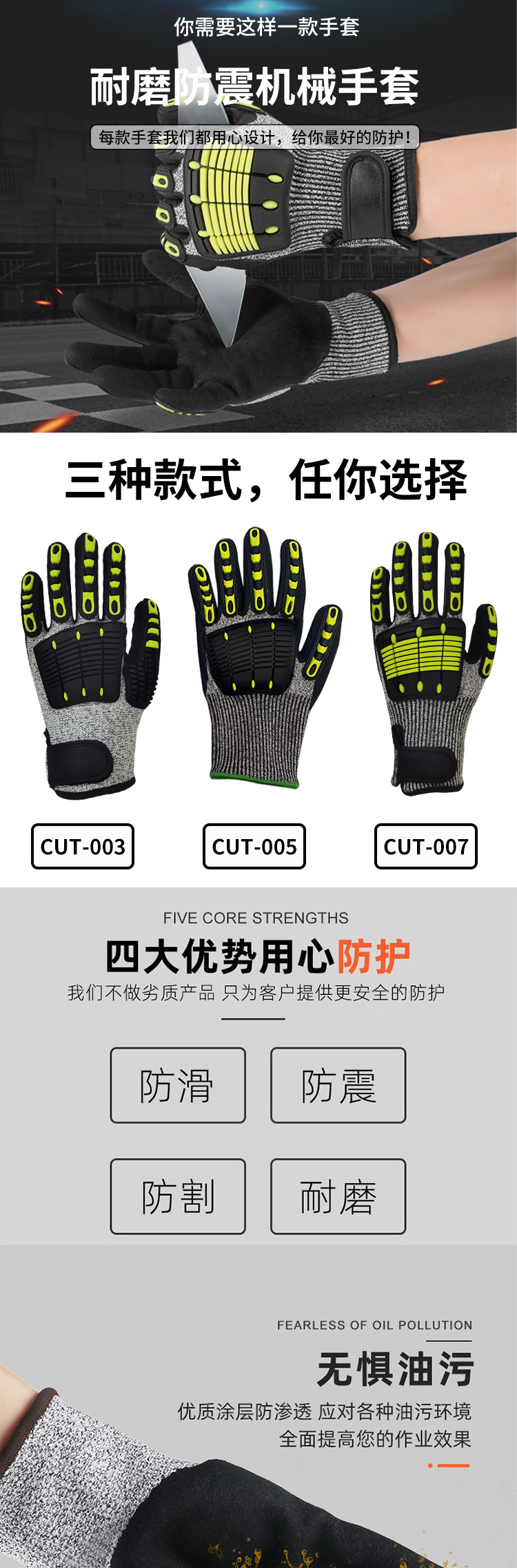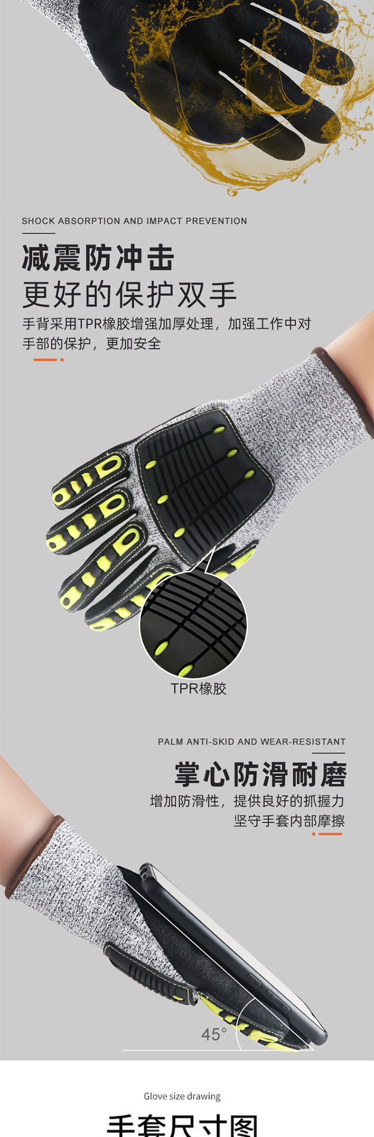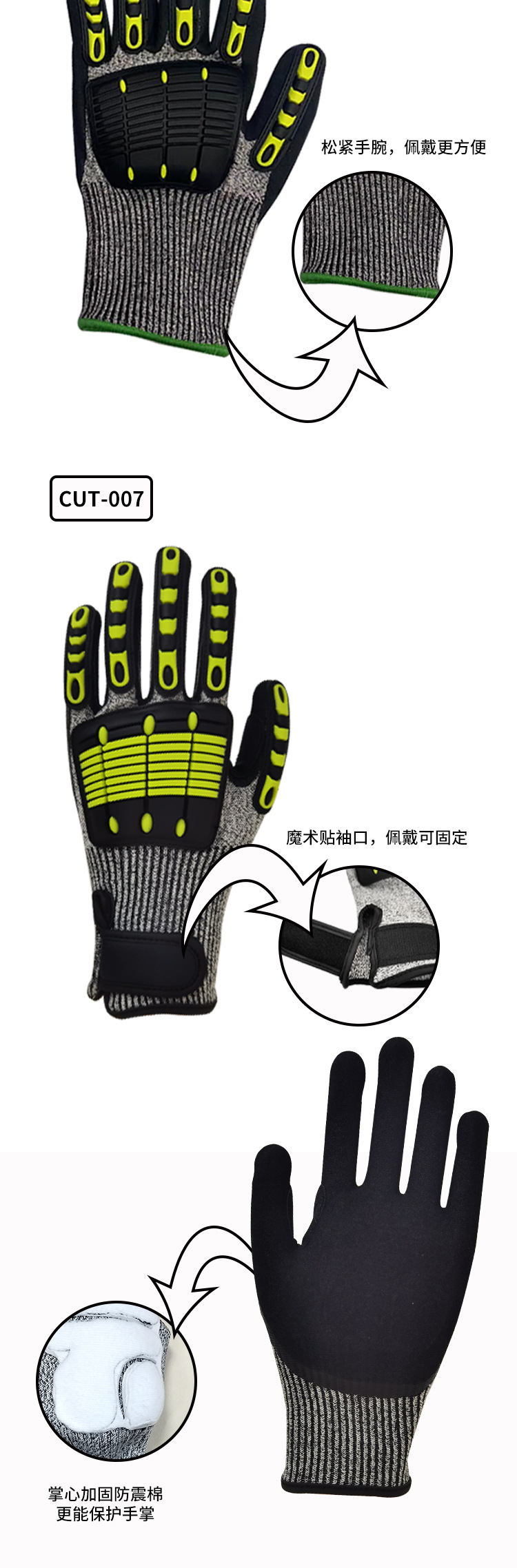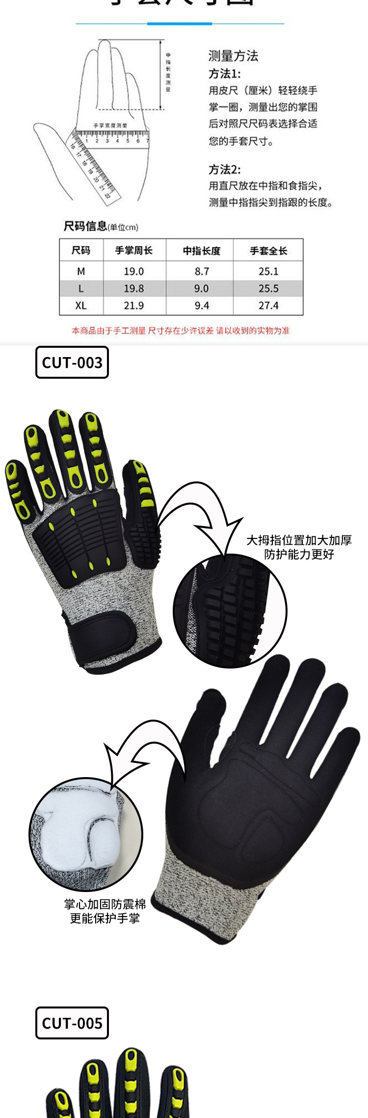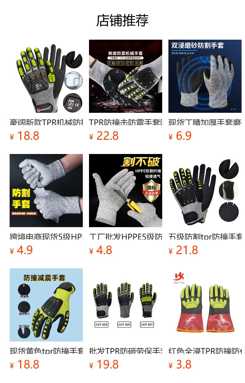 | Especificaciones y modelos | Anti-colisión M, anti-colisión L, anti-colisión XL, anti-corte de cinco niveles M (reforzamiento de la boca de tigre + velcro + algodón de palma), anti-corte de cinco niveles L (reforzamiento de la boca de tigre + velcro + algodón de palma), anti-corte de cinco niveles XL (reforzamiento de la boca de tigre + velcro + algodón de palma), anti-corte de cinco niveles XXL (reforzamiento de la boca de tigre + velcro + algodón de palma), anti-corte de cinco niveles M, anti-corte de CE, anti-corte de L, anti-corte de CE, anti-colisión de TPR, anti-corte de XL |