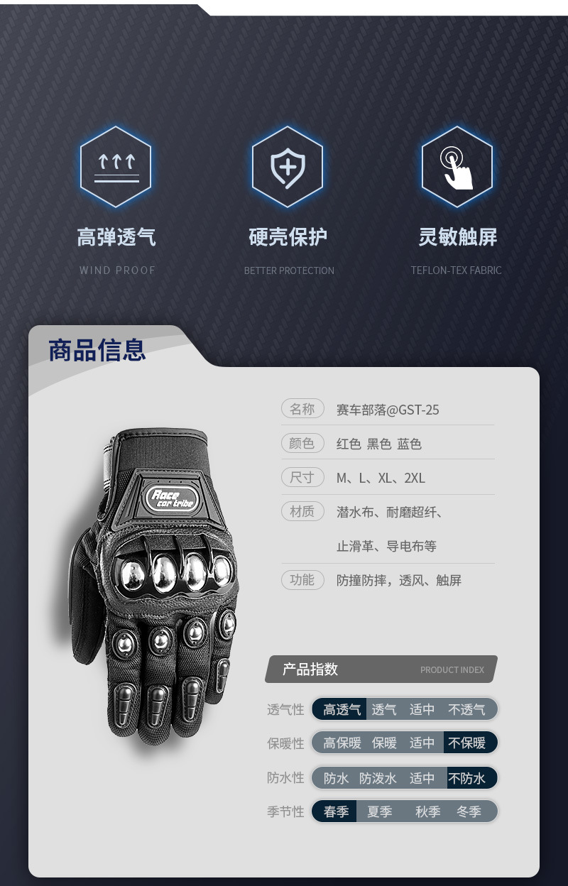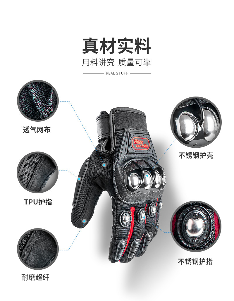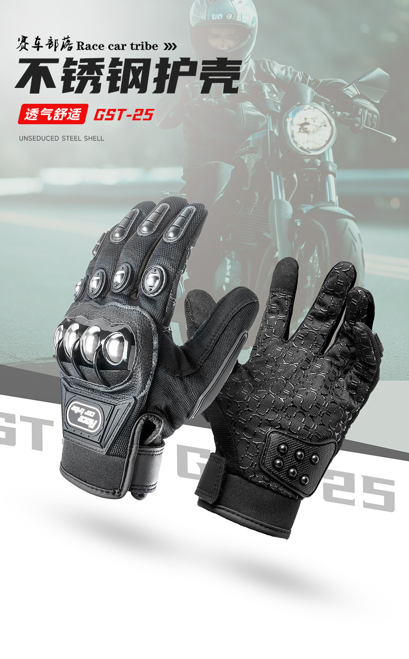 Tribe de carreras de motos guantes de montar primavera y otoño de los hombres y las mujeres dedo completo de acero inoxidable equipo de protección resistente a la caída de la motocicleta GST25