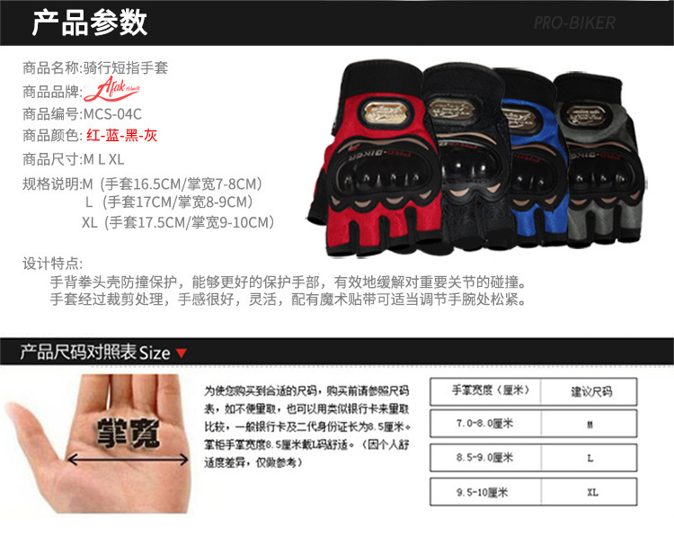AFAK motocicleta montar fuera de la carretera de carreras al aire libre guantes de medio dedo guantes antideslizantes transpirables