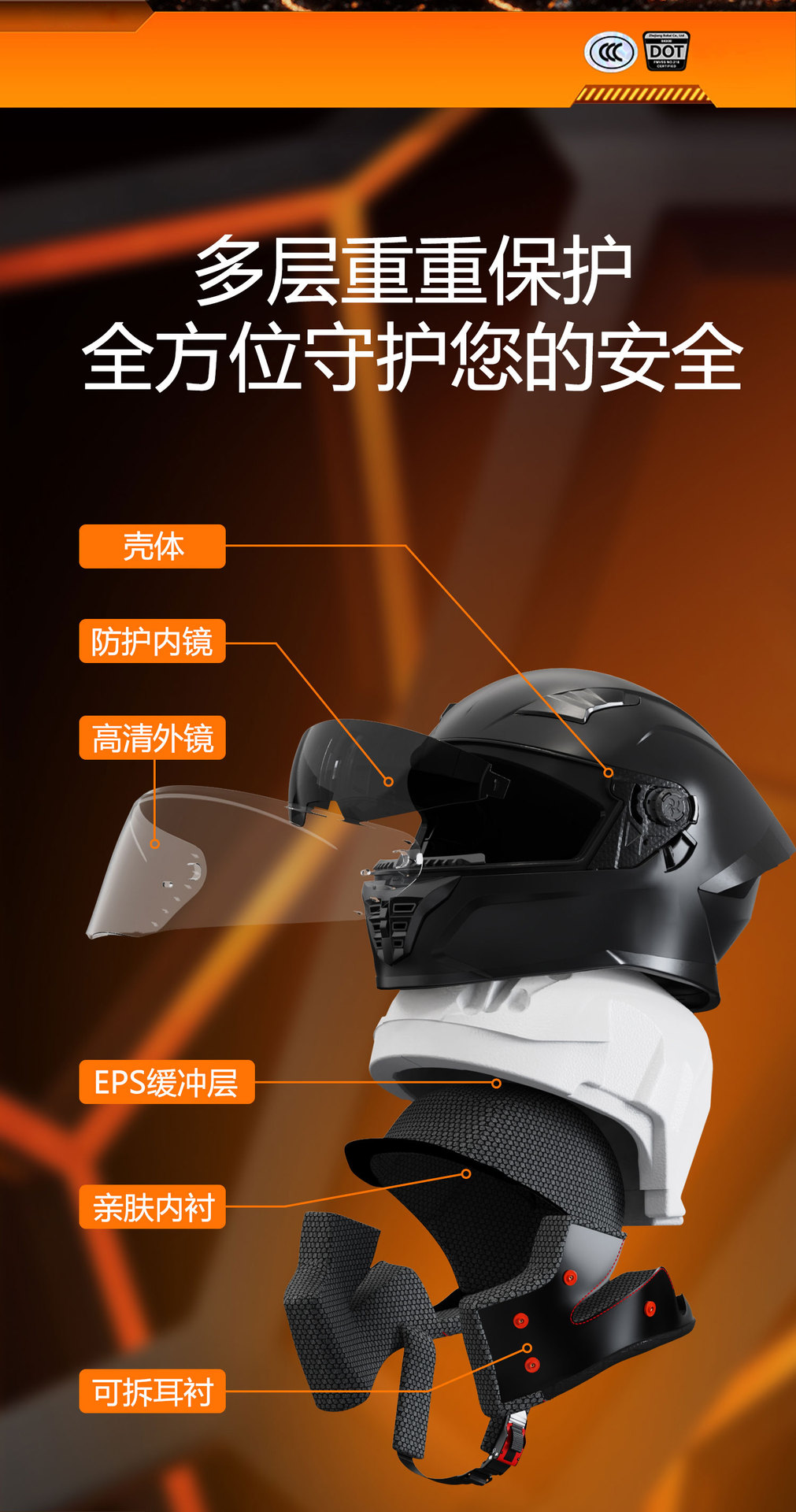 3.镜片:PC双镜片,外镜透明,内镜防晒。