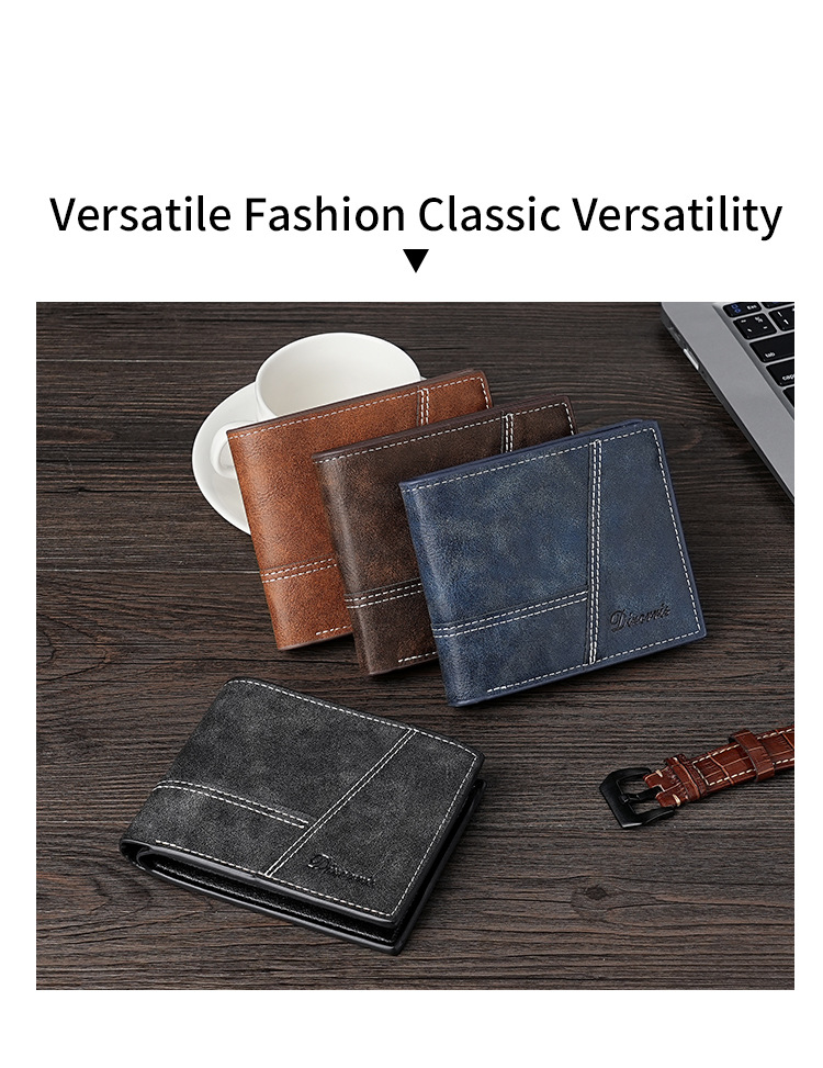 Cartera de los hombres cartera corta esmerilada titular de la tarjeta de gran capacidad horizontal de los hombres cartera de los hombres engrosada negocio tríptico