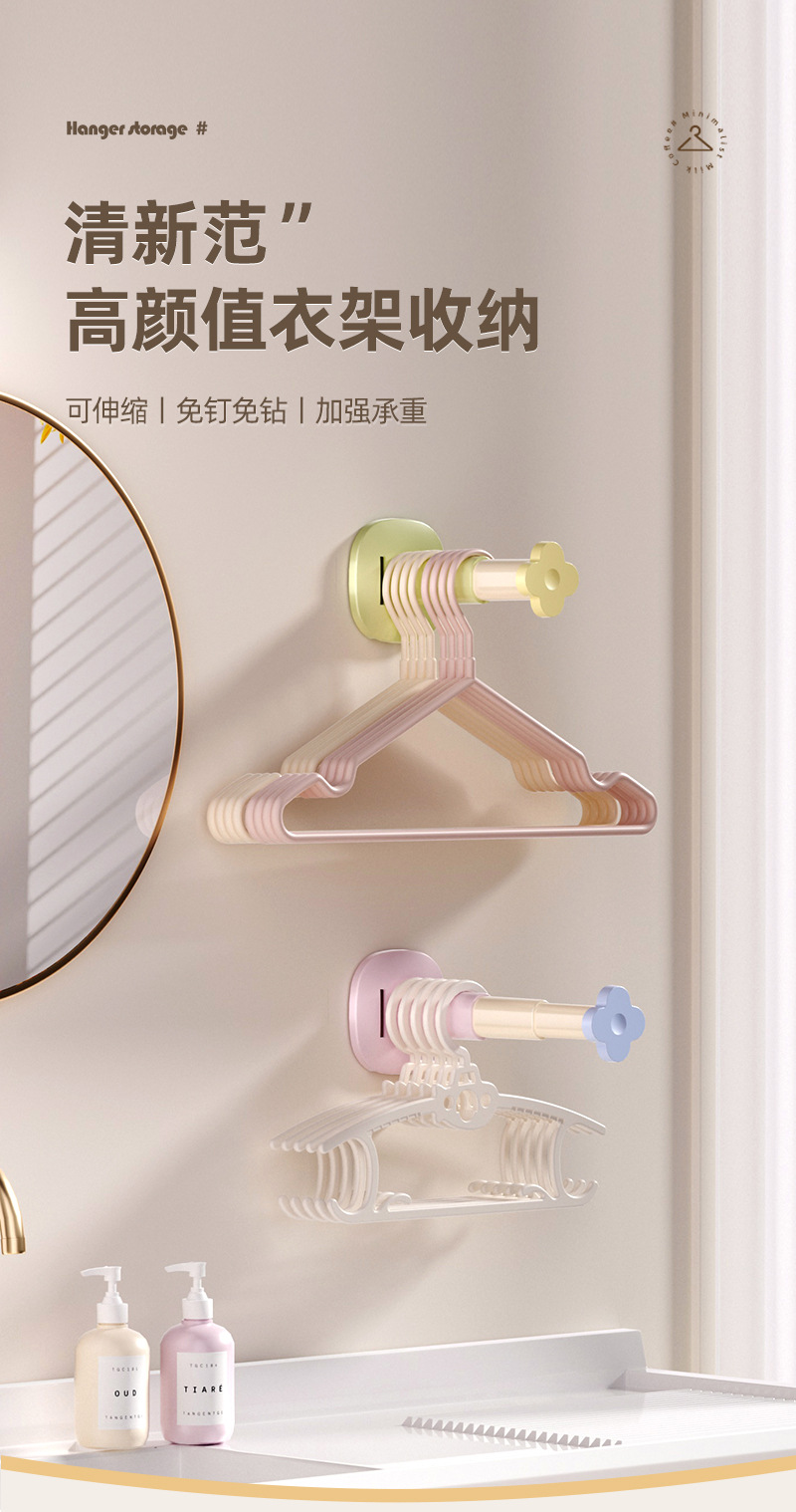 Nuevo estante de almacenamiento de perchas para el hogar balcón estante de almacenamiento telescópico multifuncional percha sin perforaciones en la pared